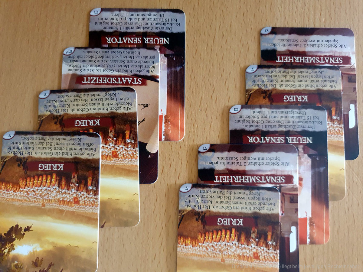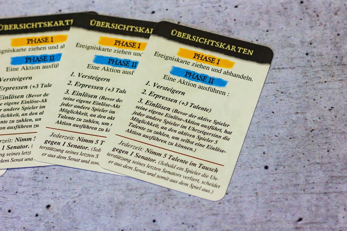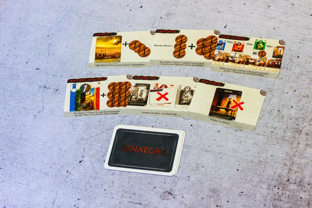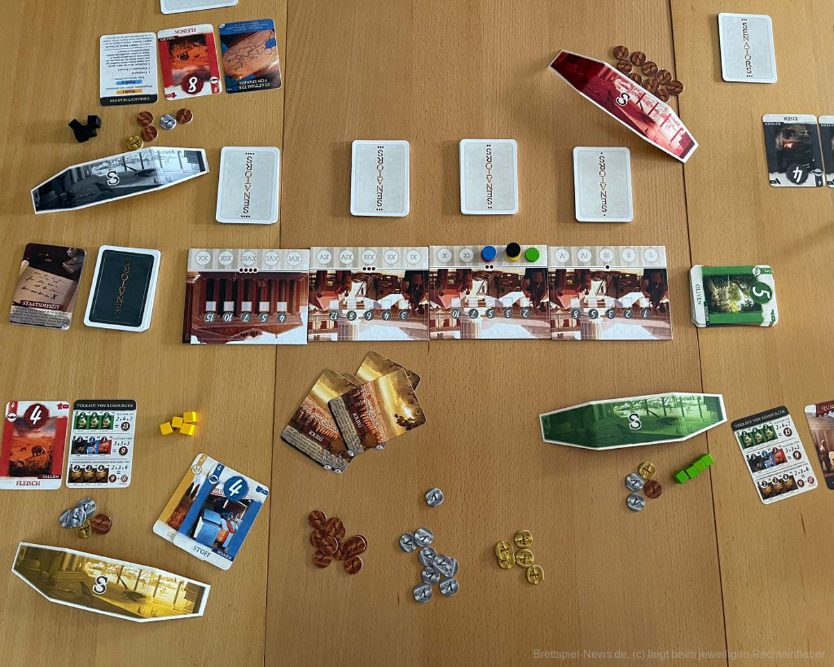 Eine Zeit lang war die deutsche Version von SENATORS, dass 2018 erstmals erschienen war, ausverkauft. Mittlerweile ist das Spiel jedoch wieder gut verfügbar, so das sich Menschen, die sich für das römische Kaiserreich interessieren, das Spiel doch noch anschauen können. Es richtet sich an 3-5 Personen und bietet eine Spielzeit von 45-60 Minuten.