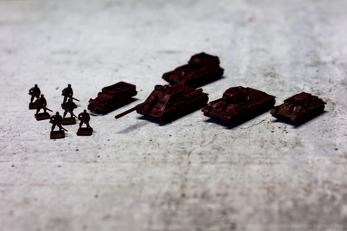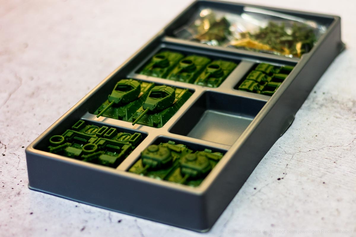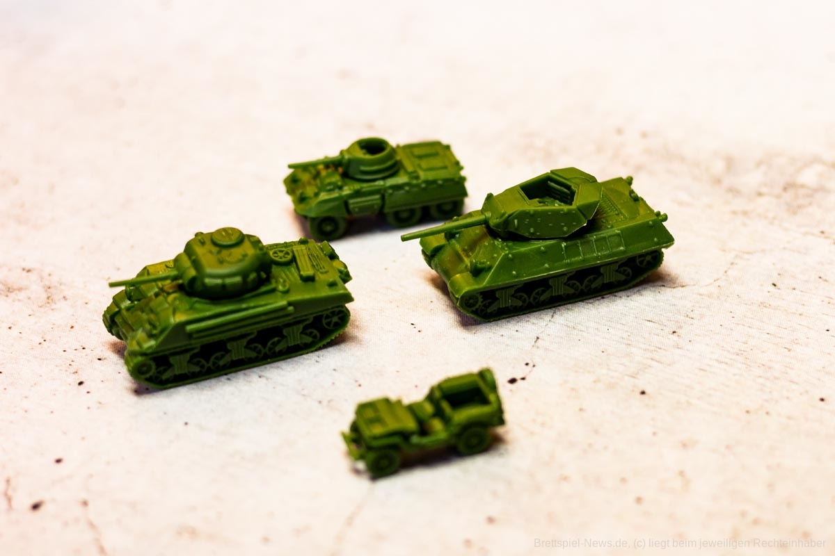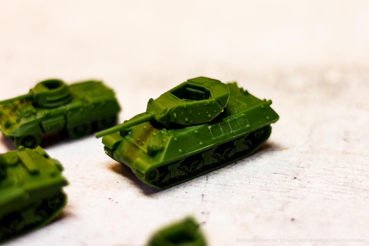 COMPANY OF HEROES ist eine auf dem PC sehr beliebte Strategie Serie. Das Brettspiel will das Spielgefühl der Vorlage auf den Spieltisch zaubern. Bezüglich des Spielmaterials, erinnert dies schon sehr an die Spielvorlage. Die vier Fraktionen haben sehr unterschiedliche Einheiten und die Panzer haben sogar drehbare Geschütze – machen insgesamt einen sehr stabilen Eindruck. Auch die Spielpläne erscheinen, als seien sie dem Videospiel entsprungen.