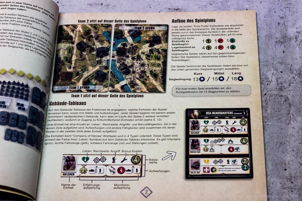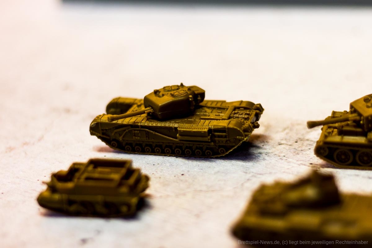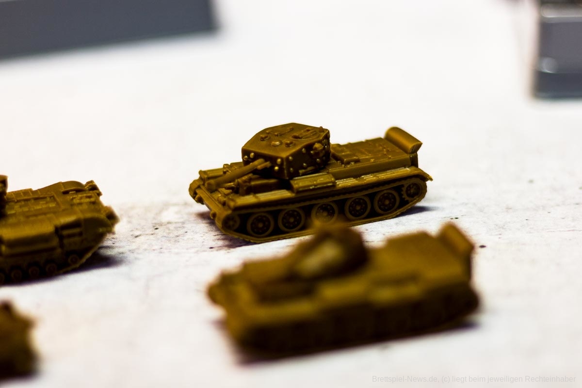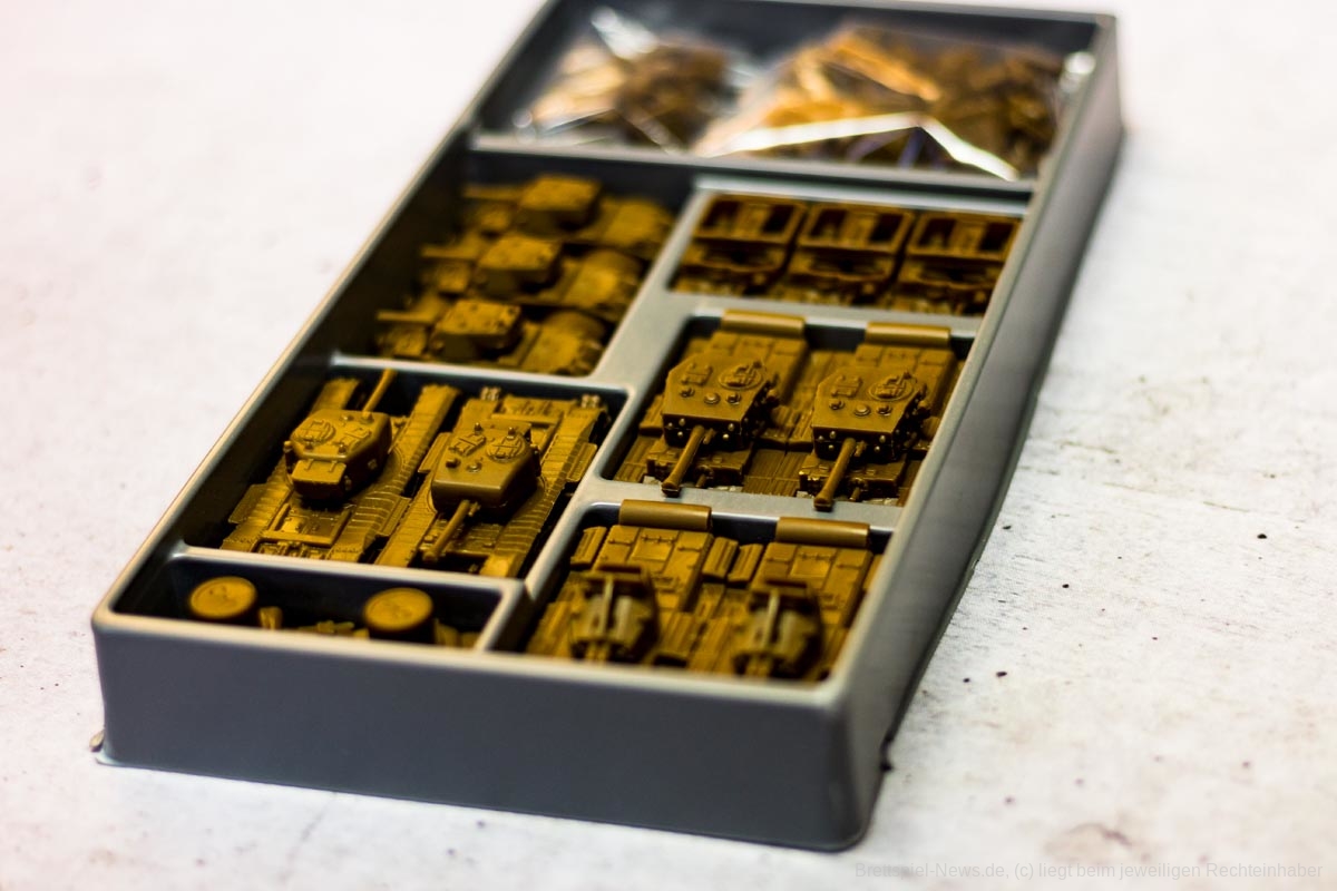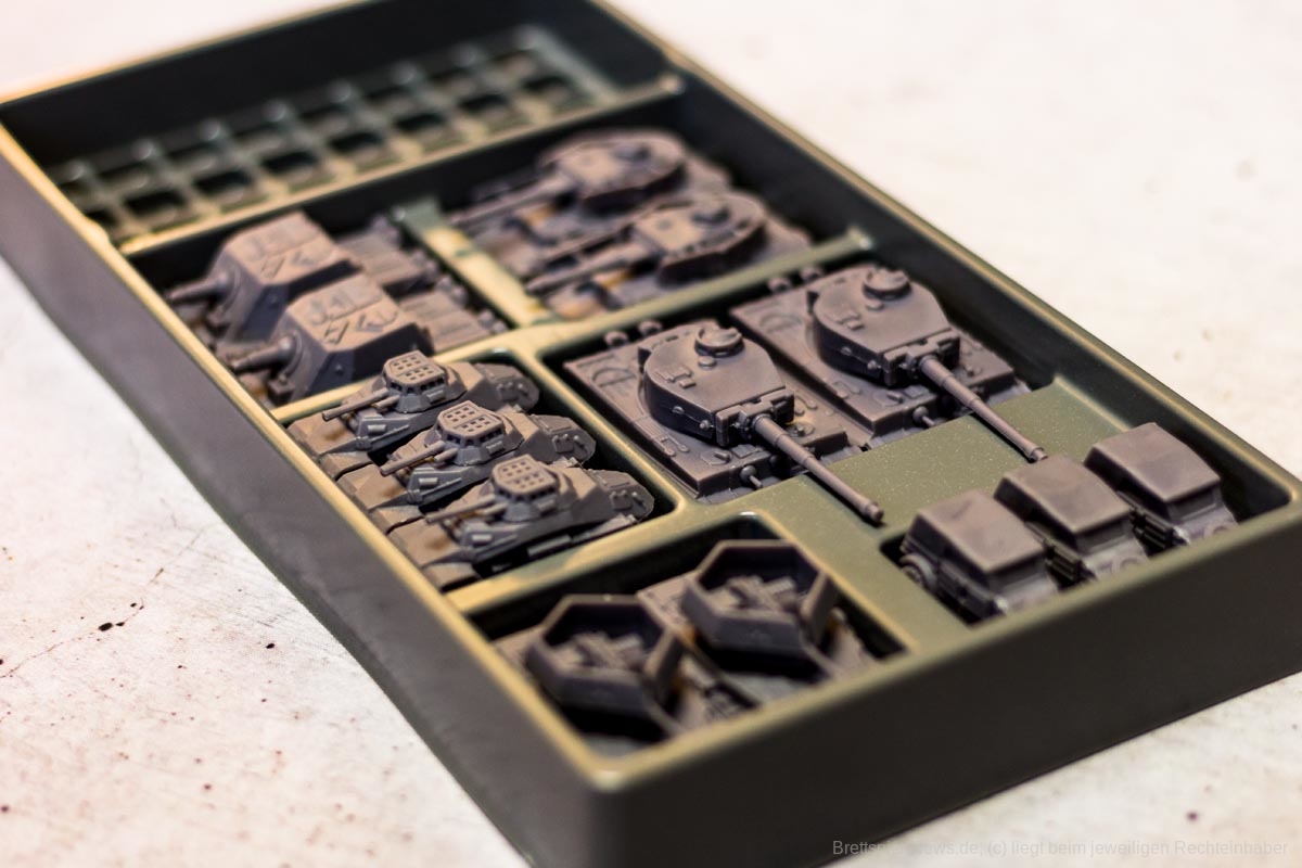 COMPANY OF HEROES ist eine auf dem PC sehr beliebte Strategie Serie. Das Brettspiel will das Spielgefühl der Vorlage auf den Spieltisch zaubern. Bezüglich des Spielmaterials, erinnert dies schon sehr an die Spielvorlage. Die vier Fraktionen haben sehr unterschiedliche Einheiten und die Panzer haben sogar drehbare Geschütze – machen insgesamt einen sehr stabilen Eindruck. Auch die Spielpläne erscheinen, als seien sie dem Videospiel entsprungen.