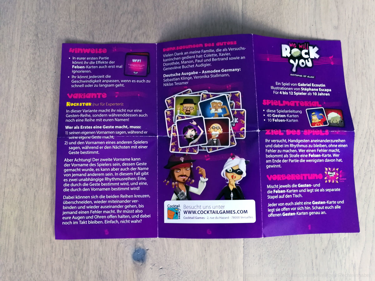 WE WILL ROCK YOU ist ein kleines Partyspiel für 4-12 Personen, dass eine Spielzeit von 30 Minuten bietet. WE WILL ROCK YOU sorgt laut Verlag für eine verrückte Atmosphäre und soll alle bis an den Rand der Erschöpfung bringen. Findet heraus, wer der wahre Rockstar in eurer Runde ist.