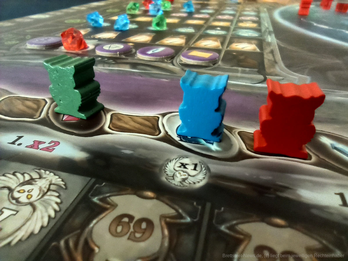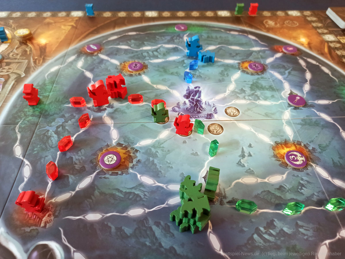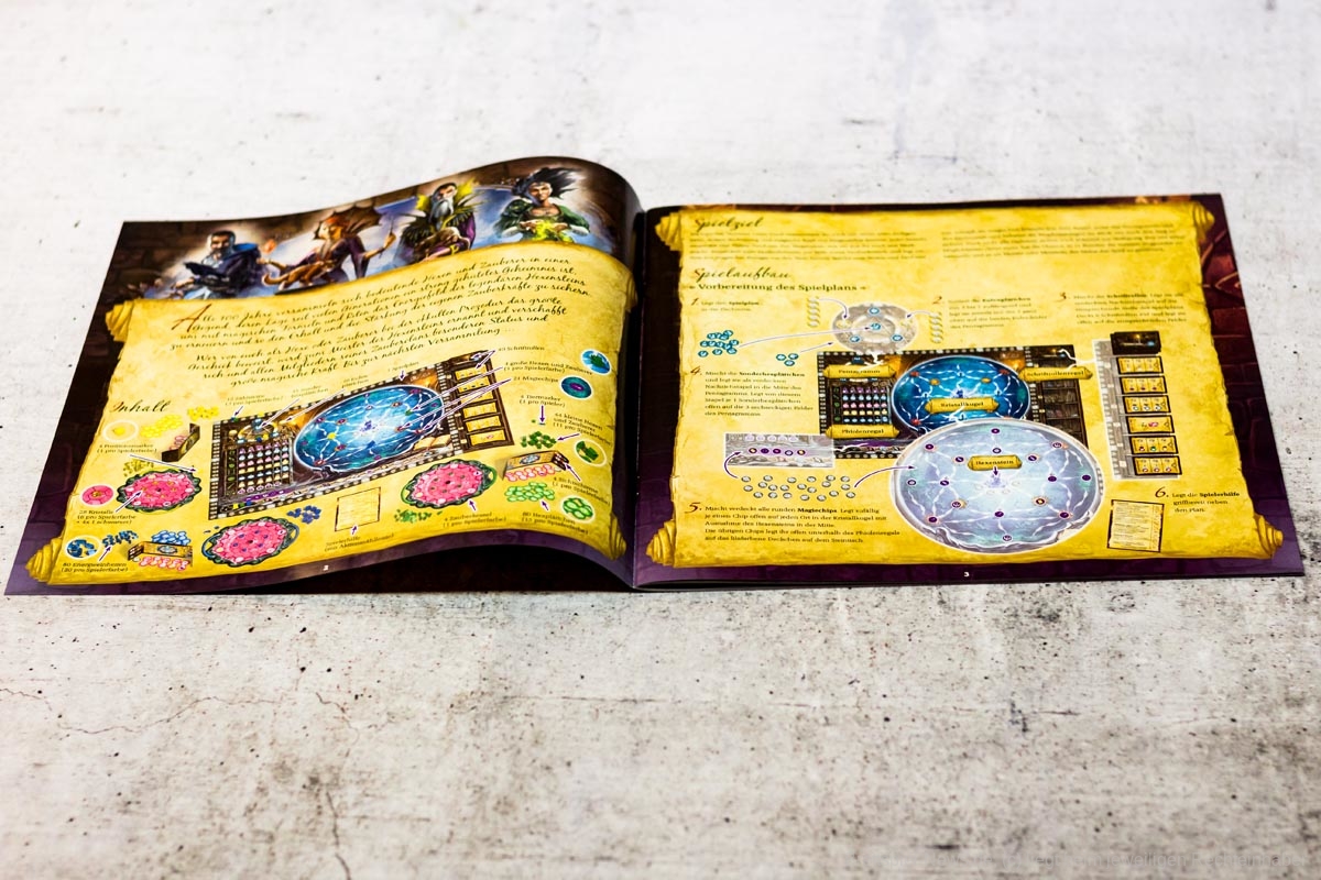 Mit WITCHSTONE hat HUCH! eine Neuheit veröffentlicht, welche vom Autorenduo MARTINO CHIACCHIERA und REINER KNIZIA stammt. Das Spiel ist für zwei bis vier Personen ab zwölf Jahren und dauert zwischen 60 und 90 Minuten. Wer keine Angst vor knalligen Farben hat darf sich an einer hübschen Optik erfreuen. Neben der Grafik macht auch das Spielmaterial einen guten Eindruck.