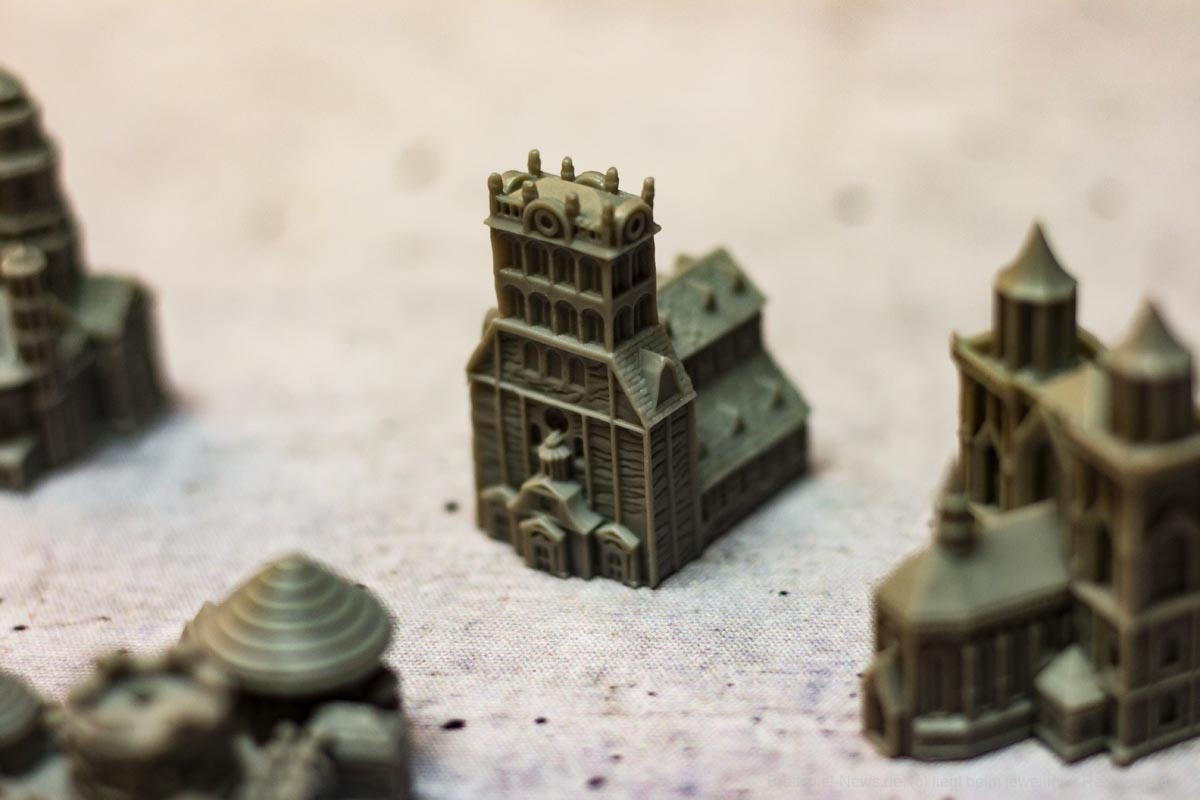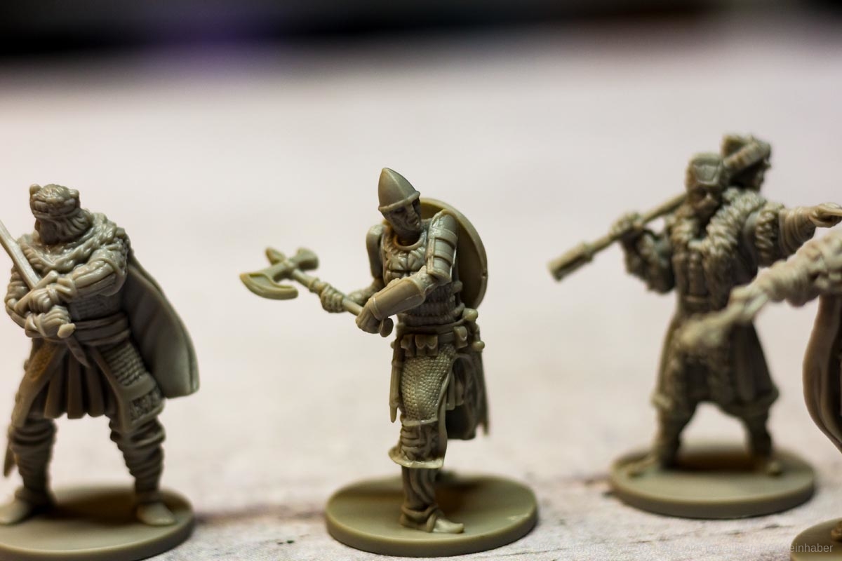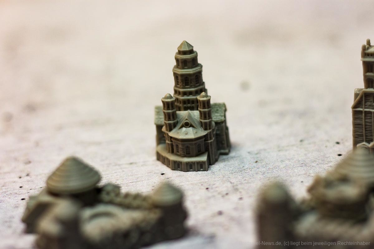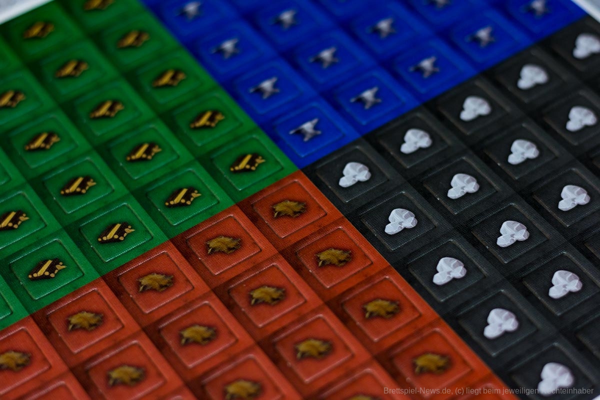 Wer eine Box sein Eigen nennt, wird es mit 1-4 Personen spielen können. Für den UVP von 119 € ist in die Spielbox prall gefüllt. Inlays, viele Karten, massig Miniaturen und Gebäude plus riesigen Spielfeld und Spielertableau bieten ein wirklich umfangreiches Spielmaterial. Der Spielpan hat epische Ausmaße vor allem mit bis zu acht Personen. Zudem sind die Tableaus der Mitspielenden sehr groß. Ein riesiger Tisch ist für die maximale Anzahl dringend nötig.