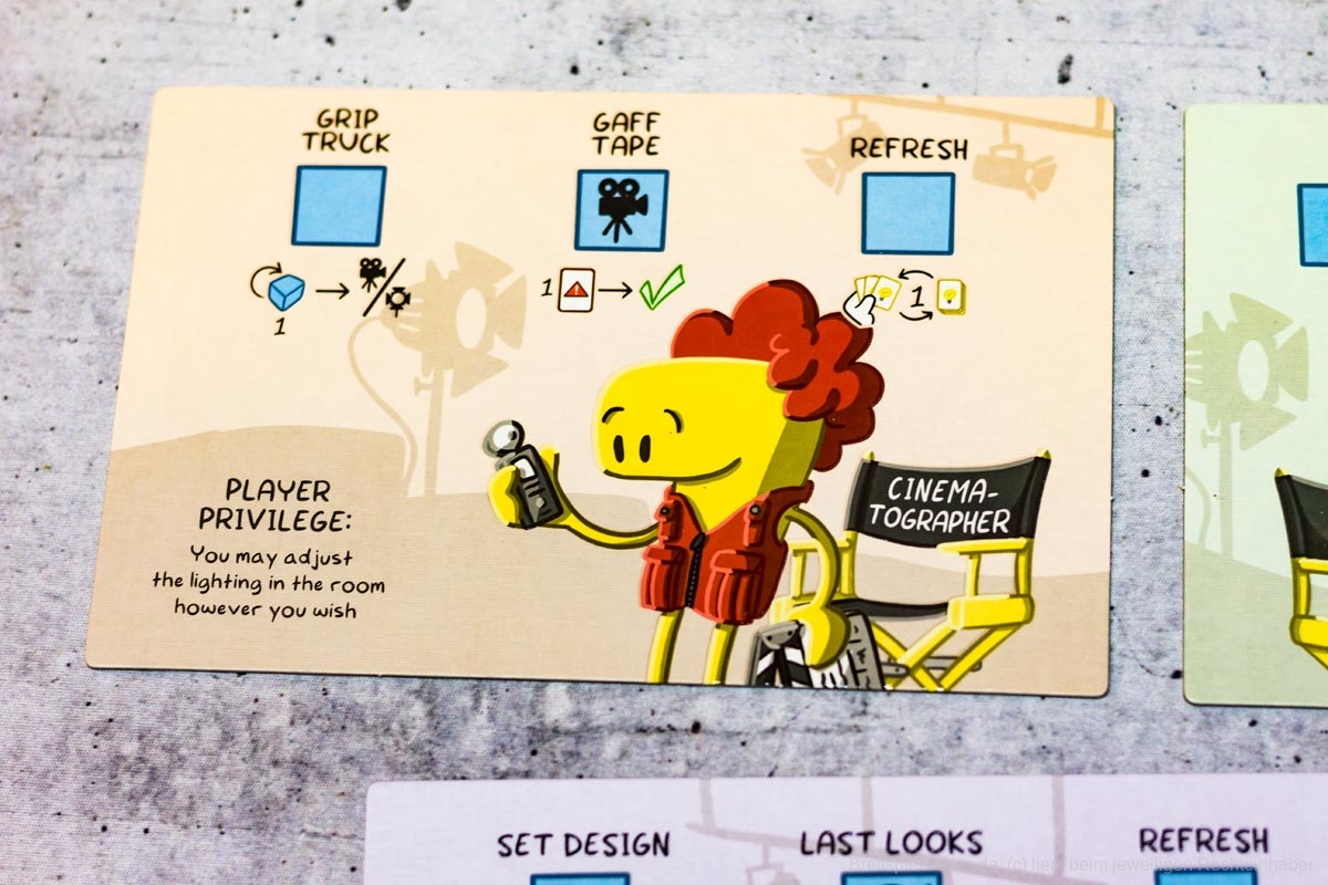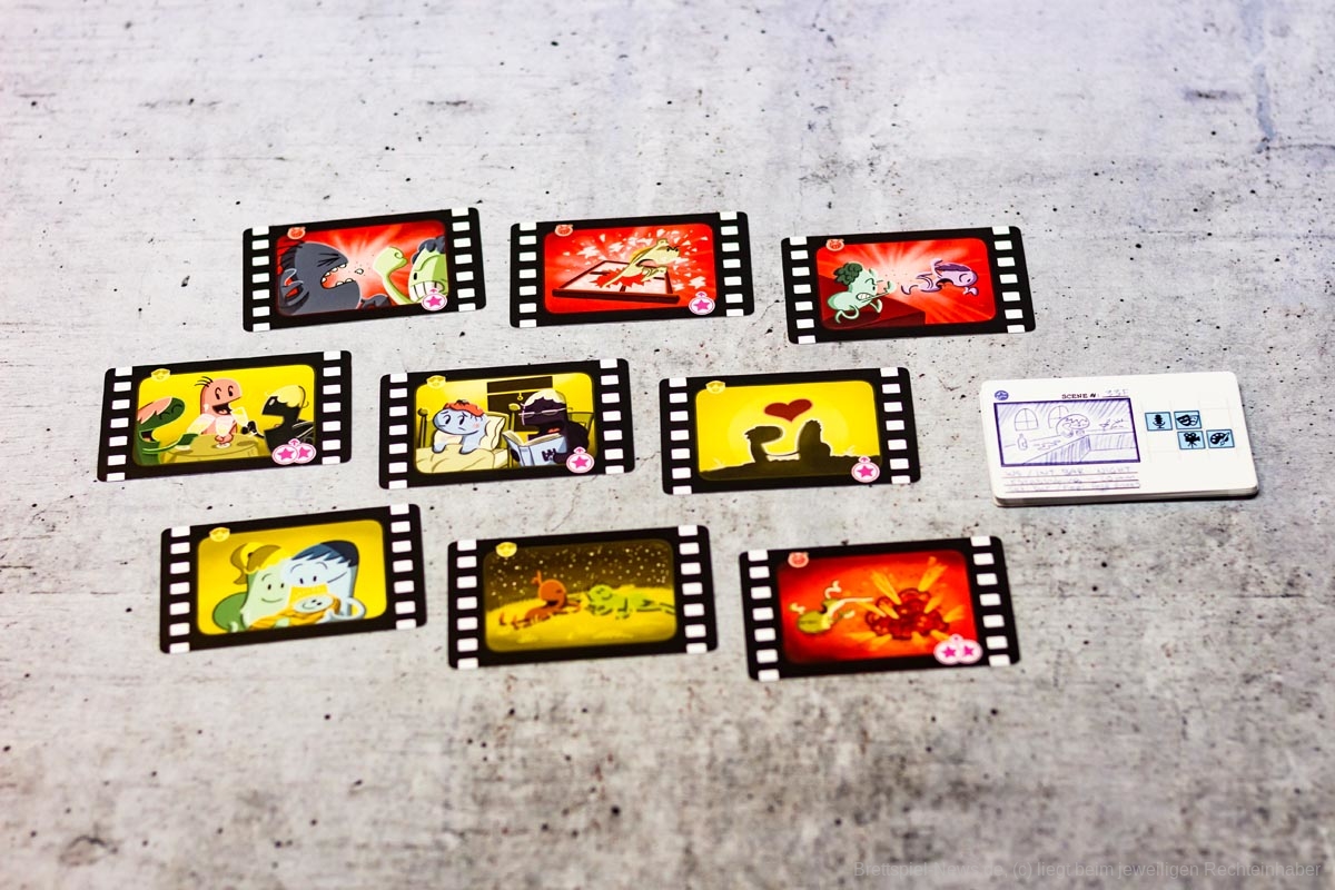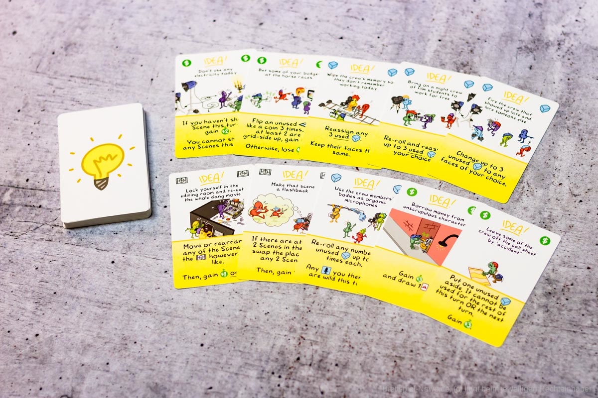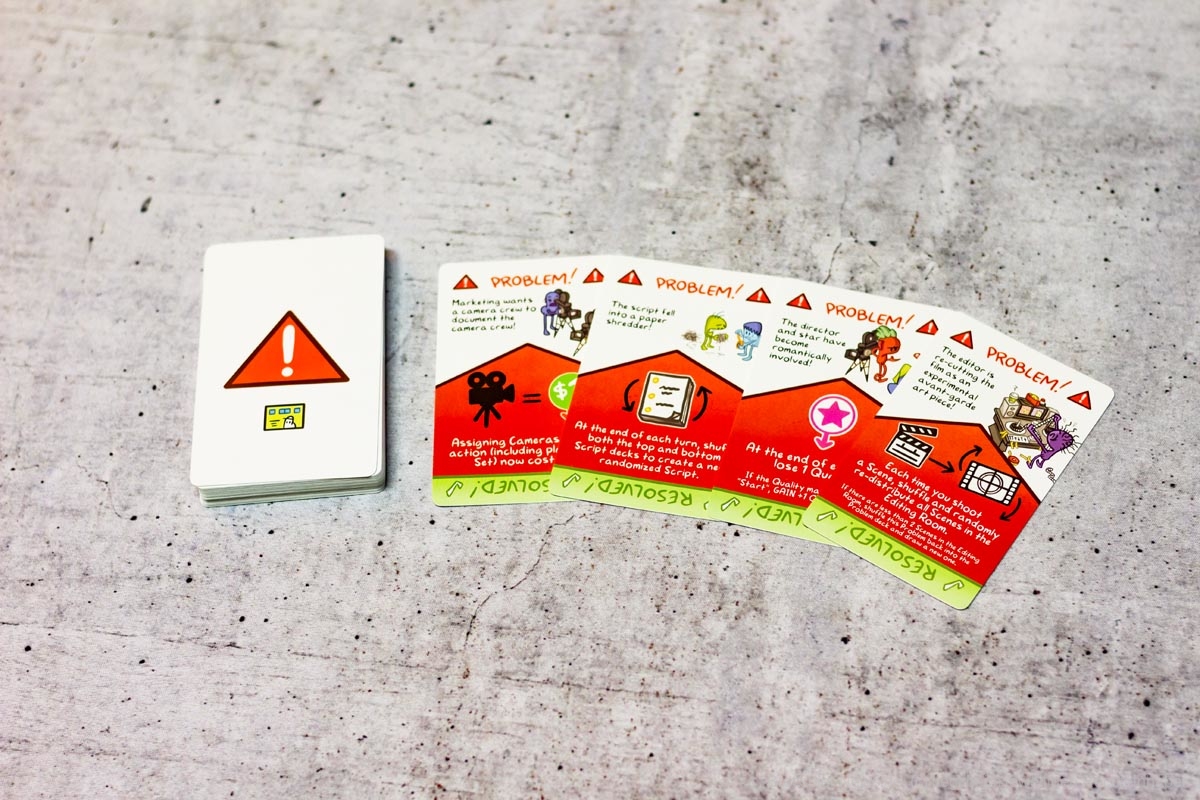 Platziere die Crew in bestimmten Anordnungen, die mit denen auf den Shot-Karten übereinstimmen, löse die ständigen Probleme, die sich dir in den Weg stellen, und halte Produktionsbesprechungen ab, um Ideenkarten aus deiner Hand auszuspielen und so zu helfen. Alles kostet Zeit und Geld, und du verlierst, wenn dir eines von beiden ausgeht. Du musst auch sicherstellen, dass dein Film eine bestimmte Qualität erreicht, um zu gewinnen!
