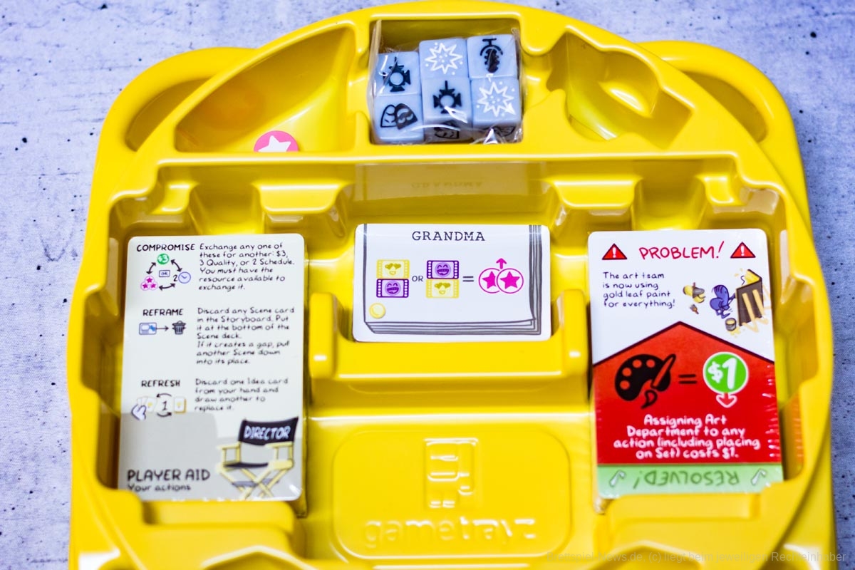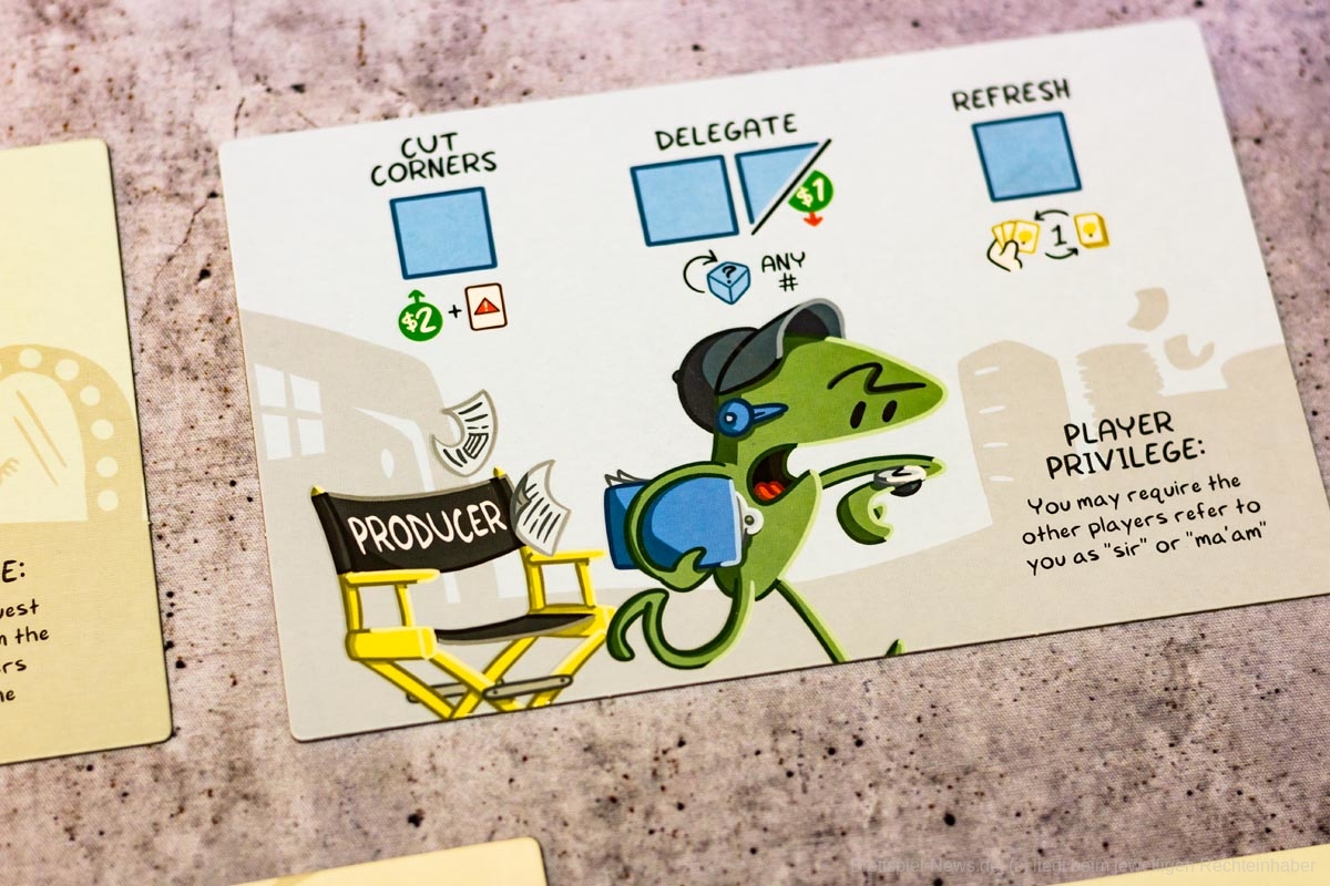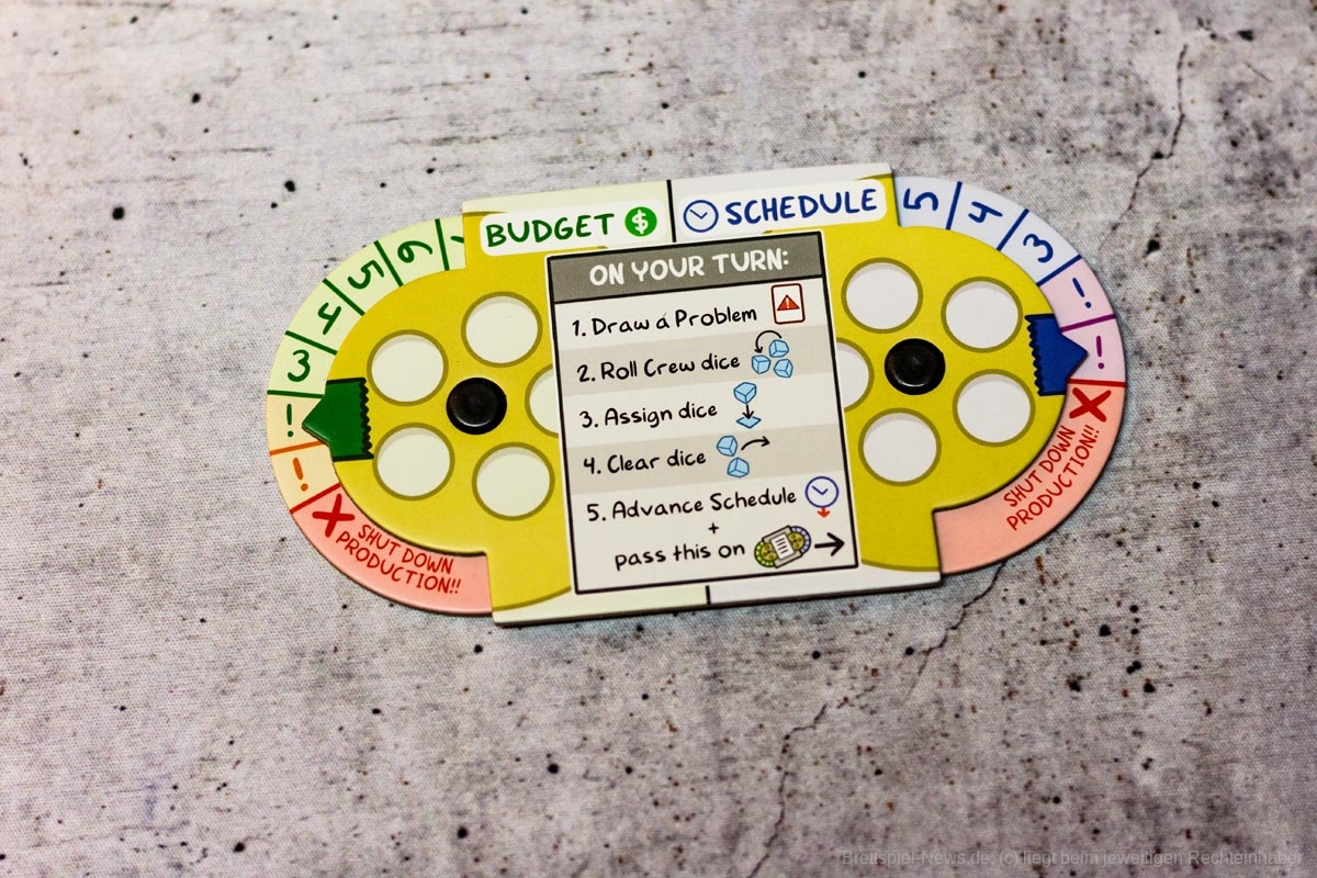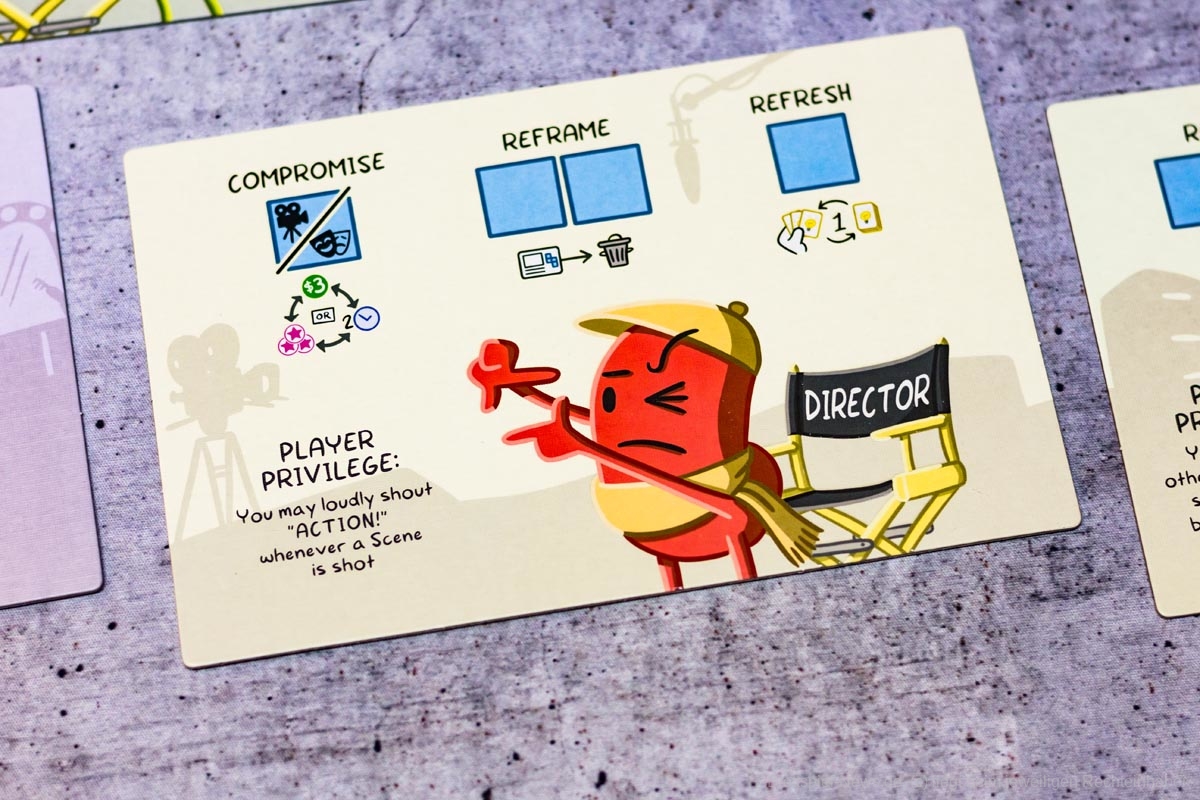 Platziere die Crew in bestimmten Anordnungen, die mit denen auf den Shot-Karten übereinstimmen, löse die ständigen Probleme, die sich dir in den Weg stellen, und halte Produktionsbesprechungen ab, um Ideenkarten aus deiner Hand auszuspielen und so zu helfen. Alles kostet Zeit und Geld, und du verlierst, wenn dir eines von beiden ausgeht. Du musst auch sicherstellen, dass dein Film eine bestimmte Qualität erreicht, um zu gewinnen!