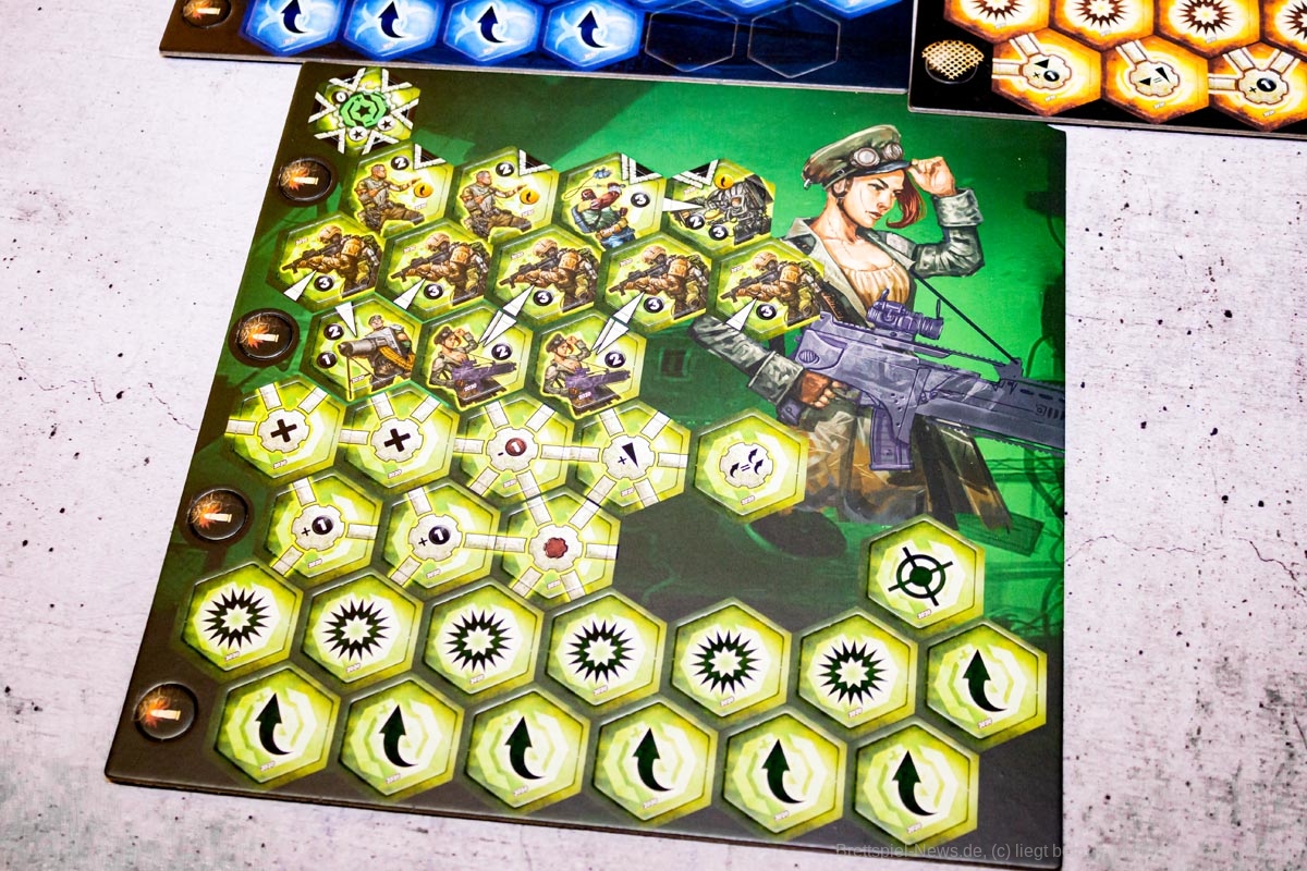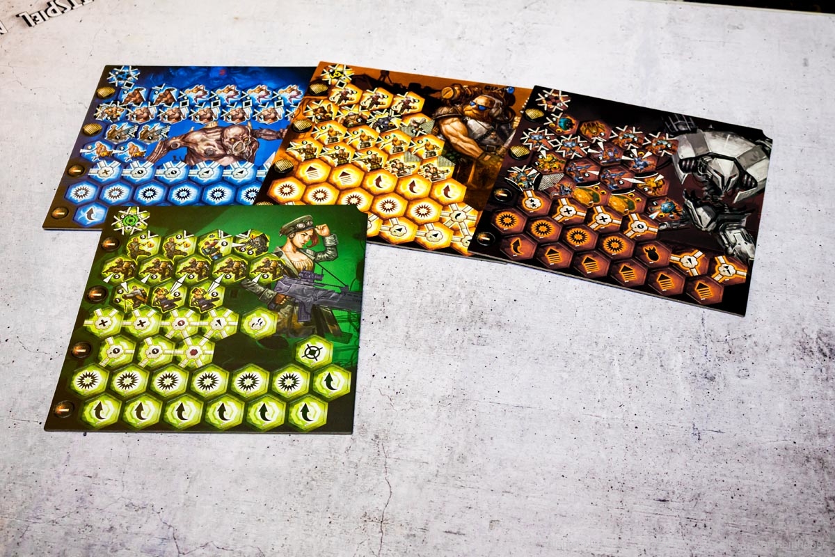 Neuroshima Hex! ist ein Strategiespiel, das in der post-apokalyptischen Welt von Neuroshima, einem polnischen Rollenspiel, spielt. Jeder Spieler führt eine von vier Armeen an: Borgo, Hegemonia (Hegemonie), Moloch und Posterunek (Außenposten). Jedes Armeedeck besteht aus 34 Plättchen: Soldaten, Unterstützungsplättchen und Spezialaktionen. Du gewinnst, wenn alle gegnerischen Hauptquartiere zerstört sind oder wenn dein Hauptquartier am Ende des Spiels am wenigsten beschädigt ist.