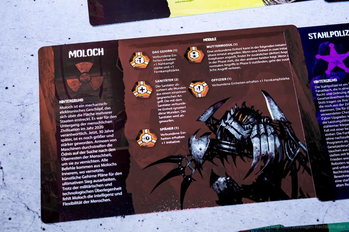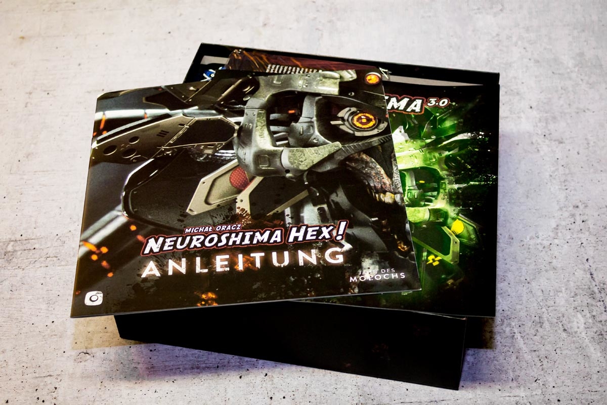 NEUROSHIMA HEX ist 2006 erstmals erschienen und hat bis heute treue Fans. Zudem gibt es mittlerweile die dritte Edition des Spiels, die 2013 erschienen war. Wer viele der verfügbaren Erweiterungen und Platzprobleme mit der Standardbox hat, der kann sich überlegen die limitierte BIG BOX NEUROSHIMA HEX: YEAR OF MOLOCH zu kaufen.