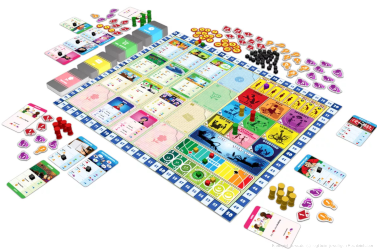 In DAS STREBEN NACH GLÜCK steuerst du eine Figur durch ihr gesamtes Leben – von Geburt an bis ins hohe Alter. Mithilfe von Sanduhren, die für die aufgewendete Lebenszeit stehen, suchst du Hobbies, Aktivitäten, Berufe, Partner, Reiseziele und mehr aus. Es gibt unendliche viele Möglichkeiten, dein Leben zu gestalten, wie du es dir immer gewünscht hast.