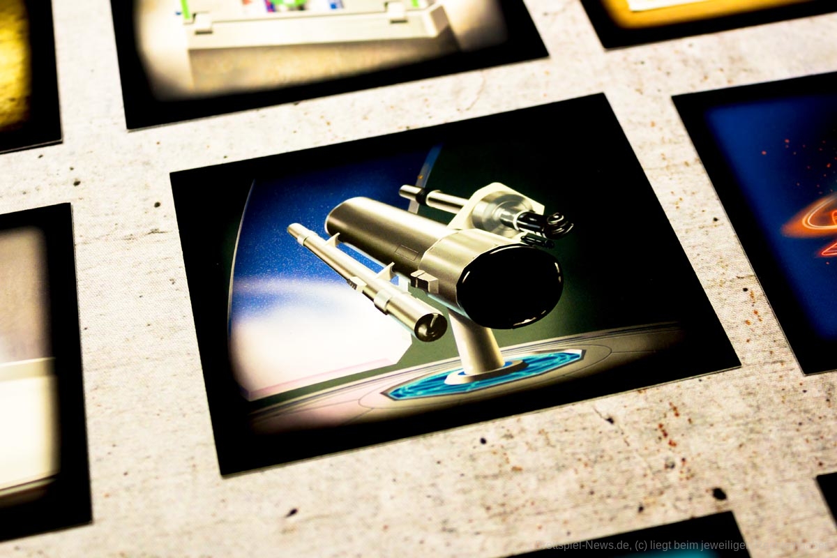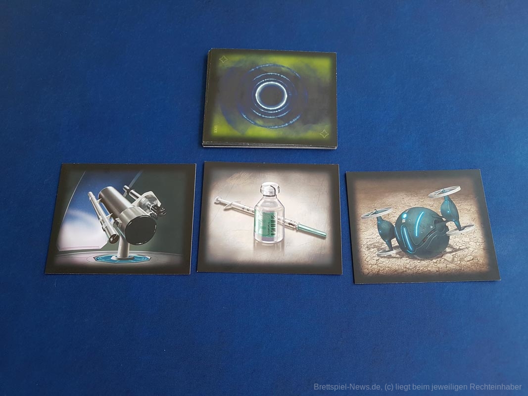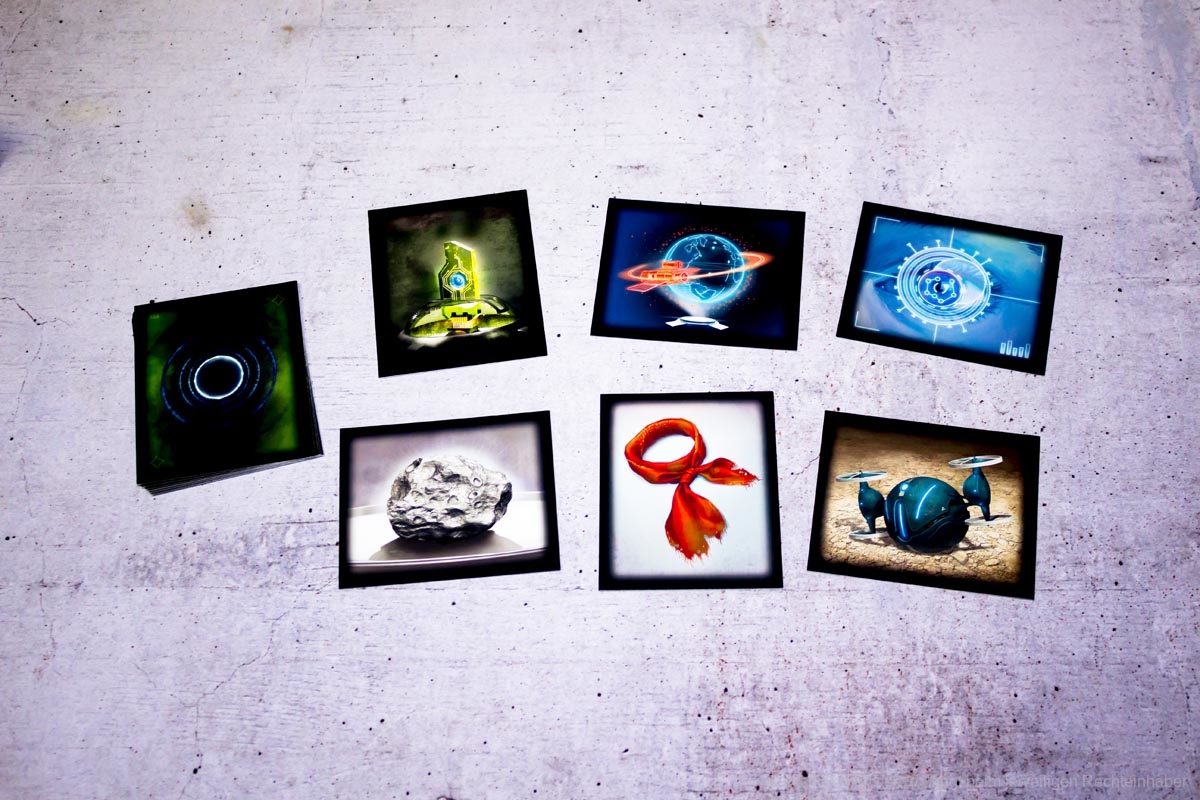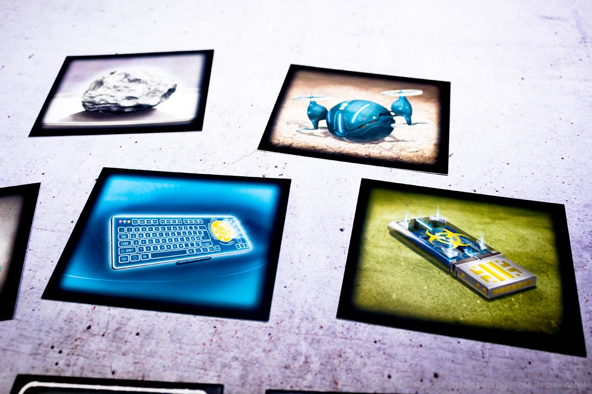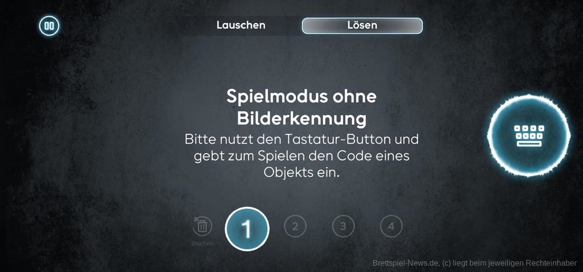 24 illustrierte Karten liefern bruchstückhafte, teils versteckte Hinweise. Hinter jeder Abbildung stecken essenzielle Geräusche oder Teile eines Gesprächs. Mit der kostenlosen „echoes“ App (für iOS und Android) können die Spieler diesen lauschen, sobald sie ihre Handykamera über das Spielmaterial bewegen, und anschließend in die hoffentlich richtige Reihenfolge bringen. „echoes“ ist in sechs Kapitel unterteilt, denen man die jeweils drei richtigen Objektkarten zuordnen muss. Die App liefert bei Bedarf nicht nur Hilfestellung und verrät, ob die Reihenfolge richtig ist, sie schafft auch gleichzeitig die für den jeweiligen Fall passende Atmosphäre.