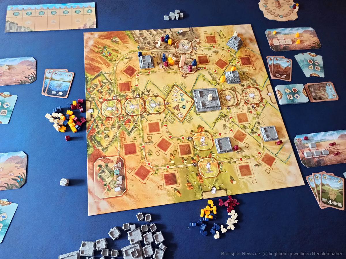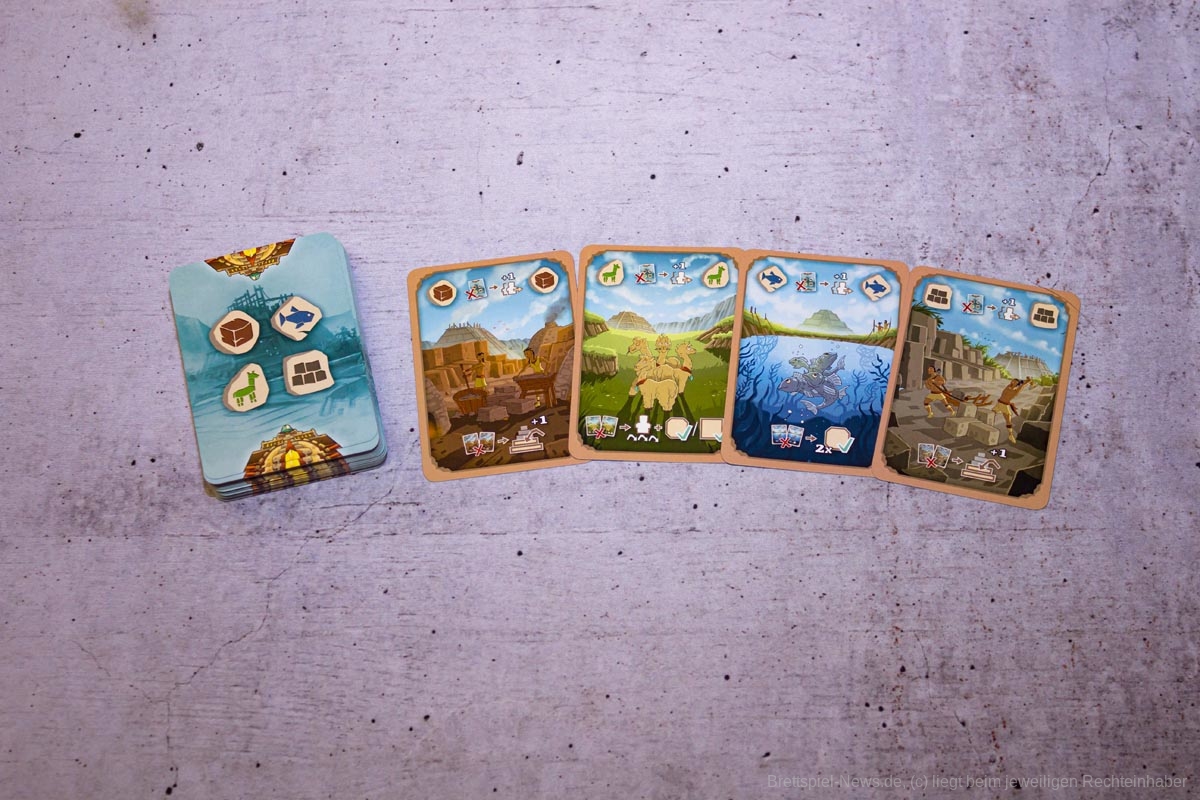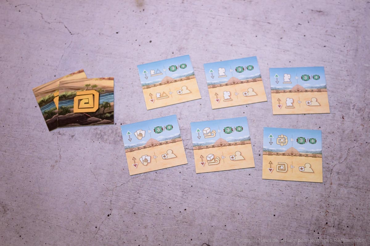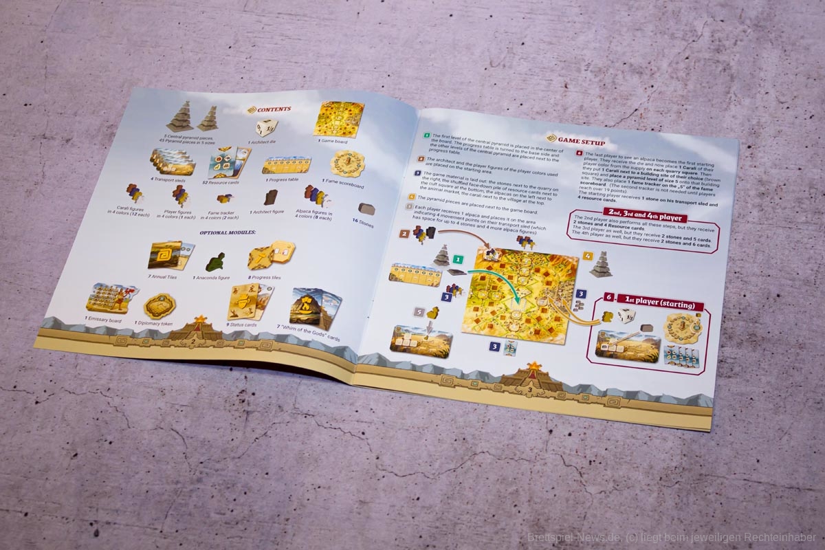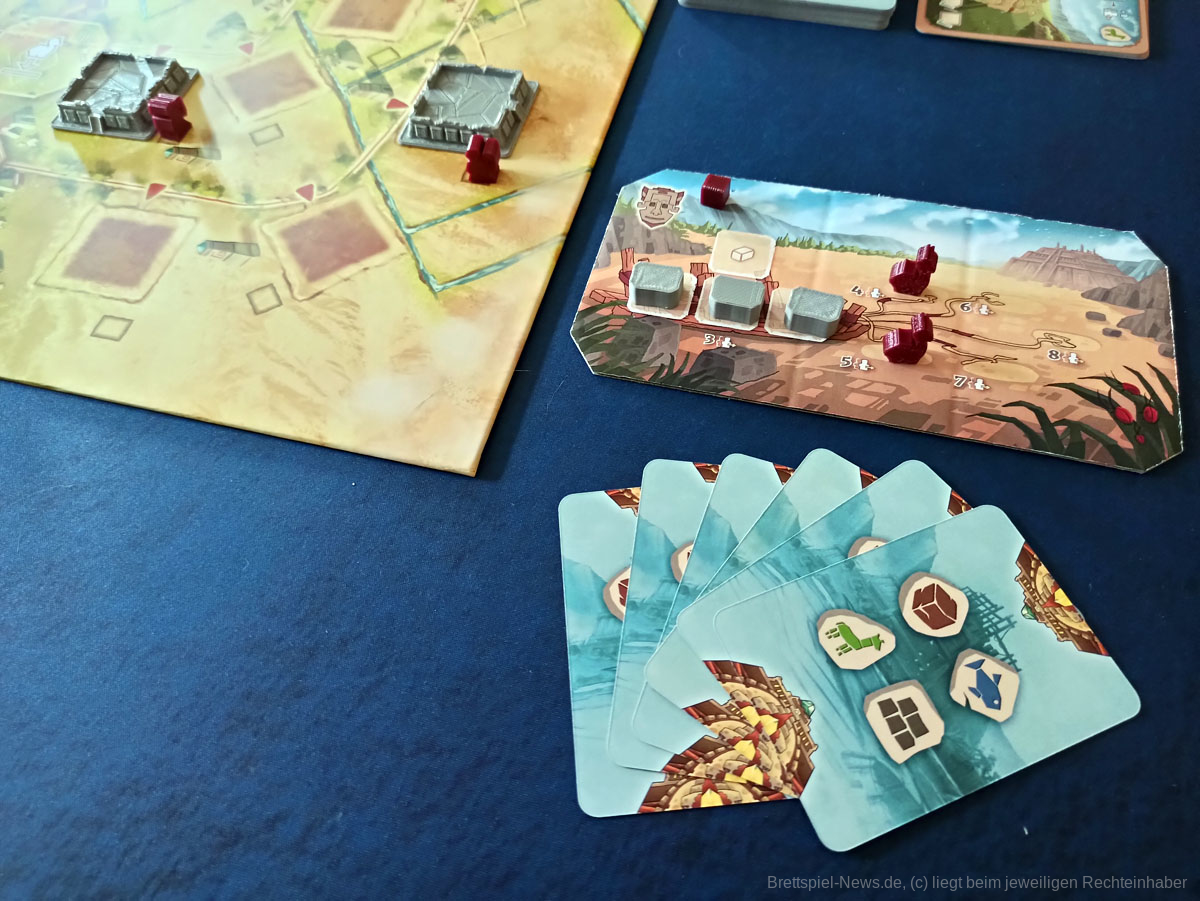 Wir haben von Funtails einen Prototyp von Caral erhalten. Das Spiel hat schon als Vorabversion sehr hochwertiges Spielmaterial und wird in der Zukunft per Crowdfunding zu unterstützen sein. Die Spielzeit wird mit 60-120 Minuten angegeben und 2-4 Personen können es zusammen spielen. Die Grafik stammt von Hendrik Noack.