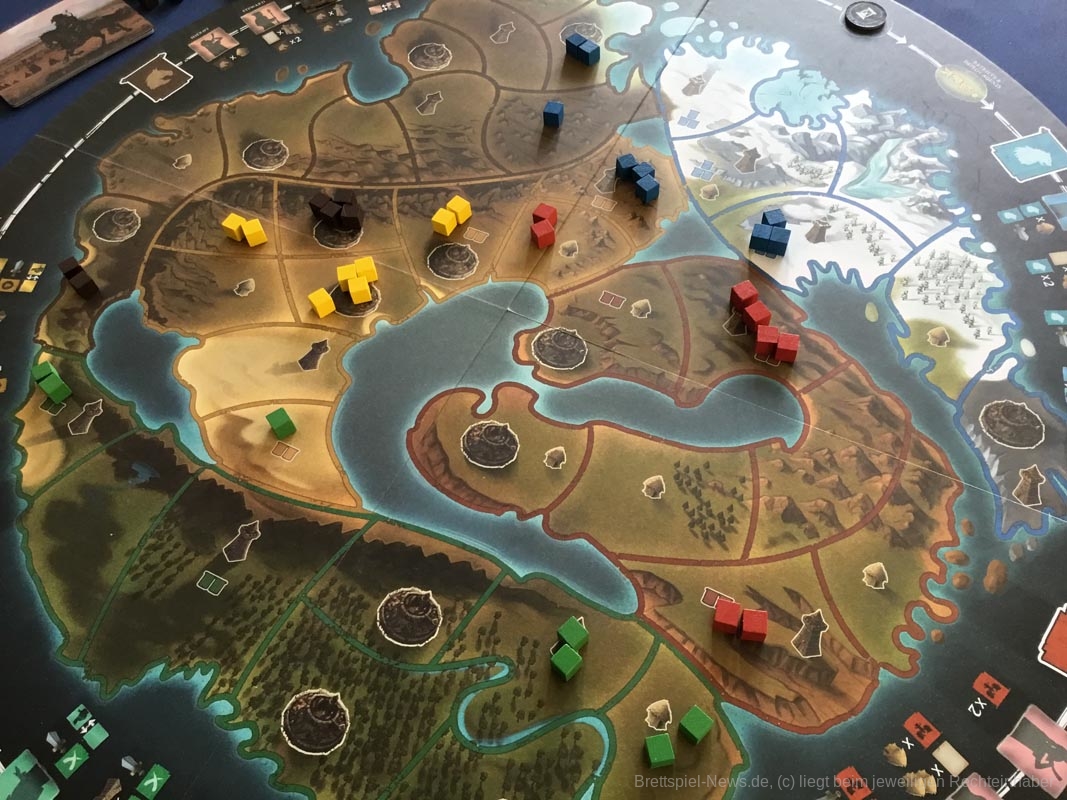 Das Spiel wiederholt sich in dieser Reihenfolge viermal. Wenn das letzte Feld auf der Rundenbahn gefüllt ist, endet das Spiel sofort und die Punktevergabe beginnt. Der Spieler mit den meisten Punkten auf der Grundlage seiner Reichstreue und der Städte, die er kontrolliert, gewinnt.