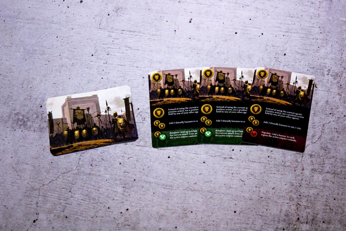 Die Phase der Reichswechsel: Jede Ratsposition in jedem Reichsrat führt eine Aktion aus. Wenn ein Spieler Karten erworben hat, darf er sie in dieser Phase ausspielen.