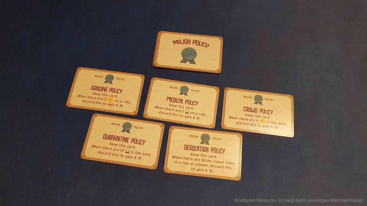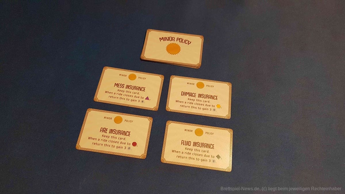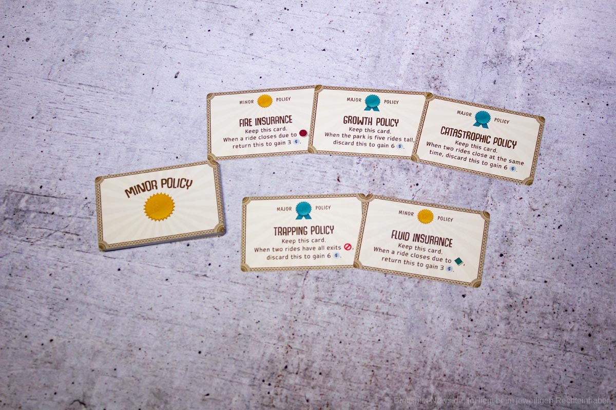 Außerdem können Versicherungspolicen abgeschlossen werden, damit man von bestimmten schlechten Ergebnissen profitieren kann, was zu direkter Sabotage aus Profitgründen ermutigt. Wenn der Park schließlich wegen schlechter Qualität, der Schließung von Fahrgeschäften oder der Verletzung von Gästen geschlossen wird, gewinnt der Spieler mit dem meisten Geld.