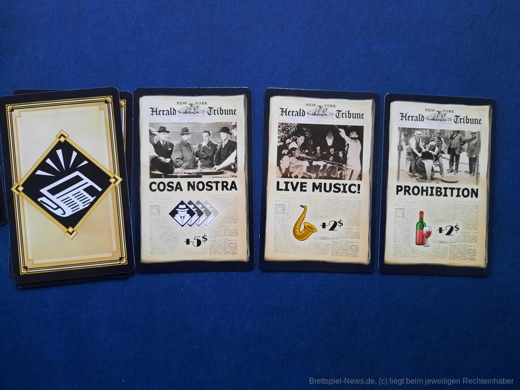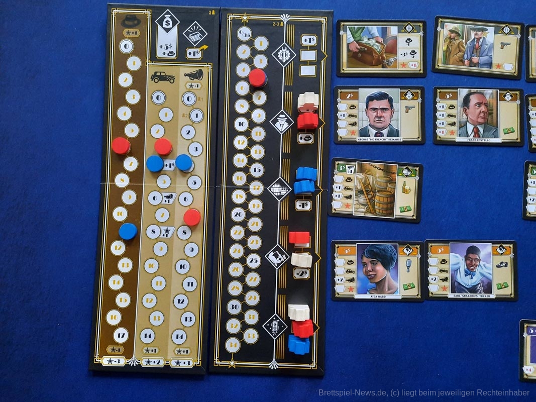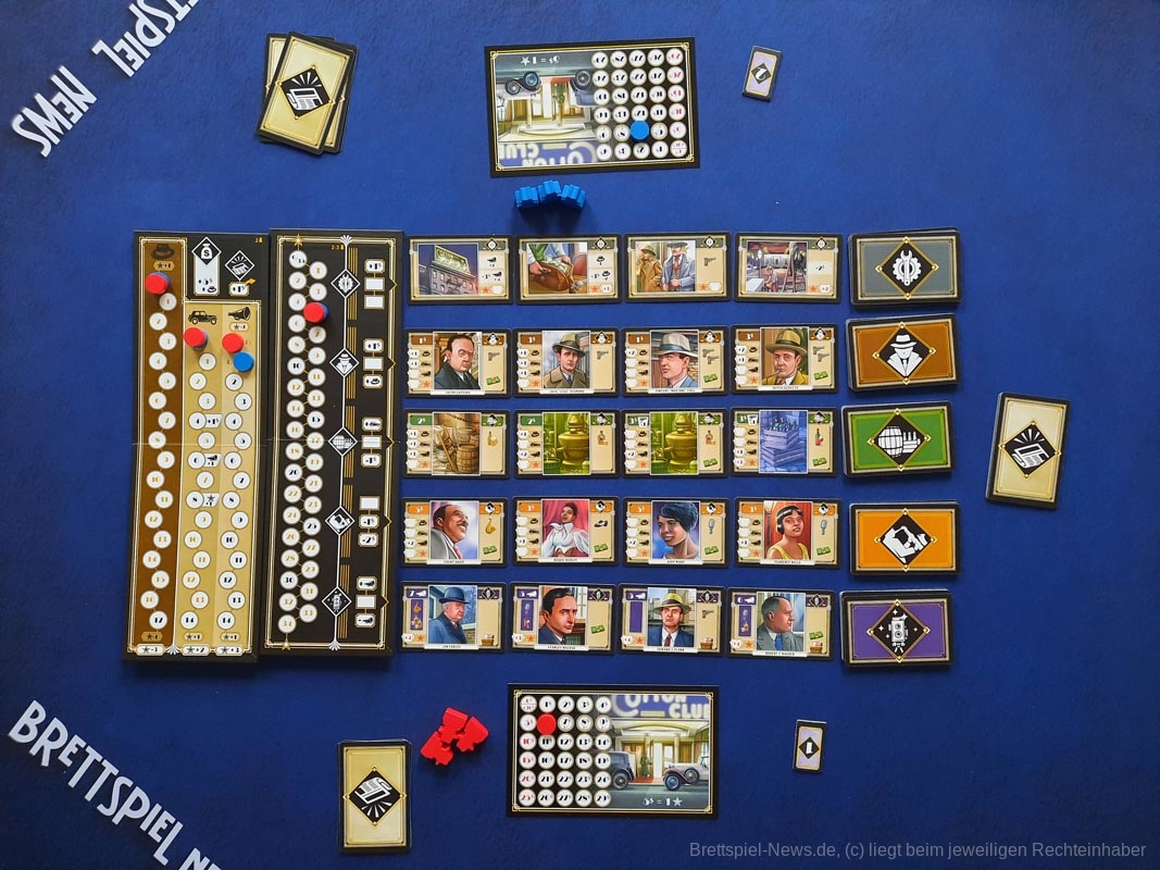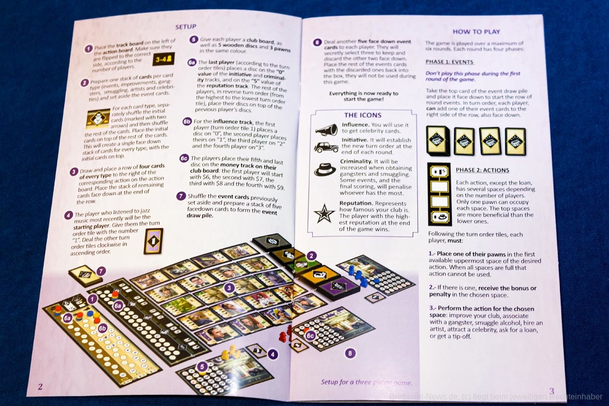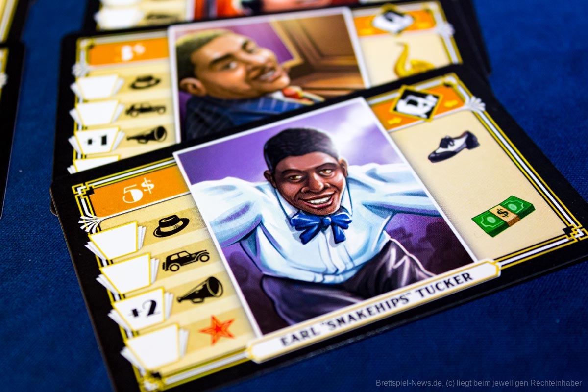 1923 Cotton Club wird über maximal sechs Runden gespielt, in denen ihr drei Spielfiguren einsetzen könnt, um zwischen verschiedenen Aktionen zu wählen: Verbesserungen vornehmen, um einen Kredit bitten, einen Tipp bekommen, sich mit Gangstern zusammentun, schmuggeln, Künstler anheuern und Berühmtheiten anziehen. Alles, um mehr Ansehen zu sammeln als alle anderen Clubs in New York! Wer am Ende die meisten Rufpunkte hat, gewinnt.