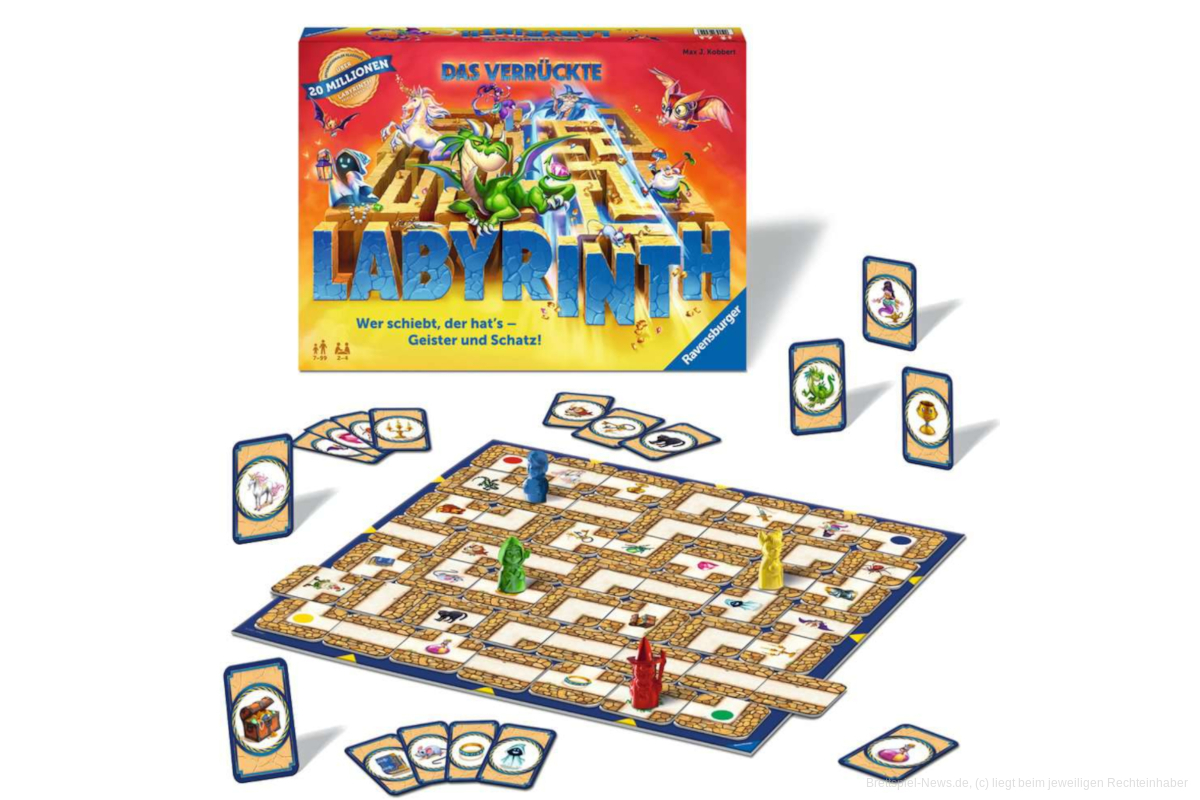 Ein Klassiker der Familienspiele DAS VERRÜCKTE LABYRINTH ist bei Ravensburger in zwei weiteren Versionen erschienen: POKÉMON LABYRINTH und in einer überarbeiteten Version mit neuem Design. 2-4 Personen ab 7 Jahren müssen sich einen Weg durchs Labyrinth suchen, um Schätze zu finden und wieder herauszukommen. Die Spielzeit liegt bei 20-30 Minuten.