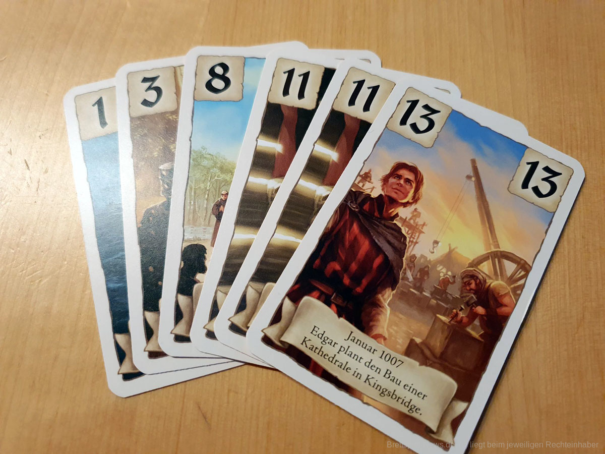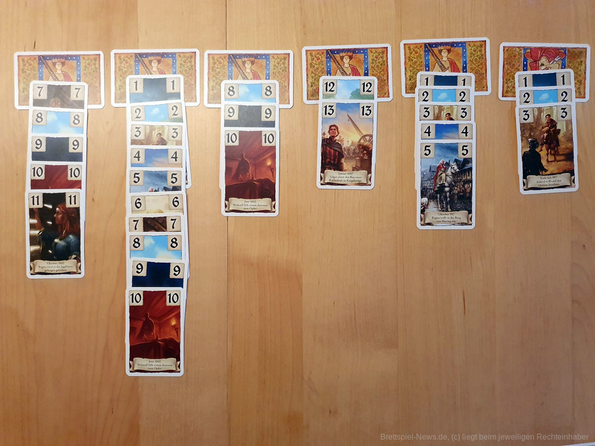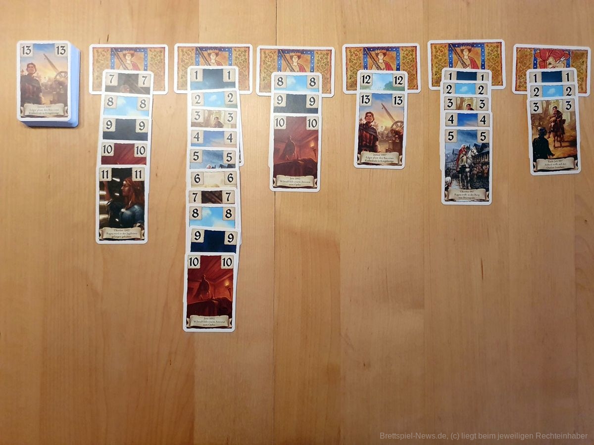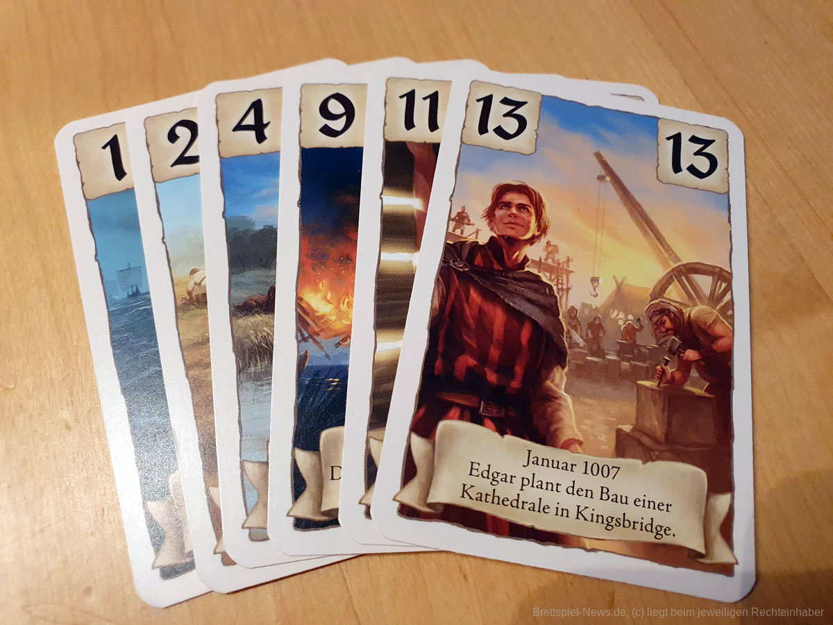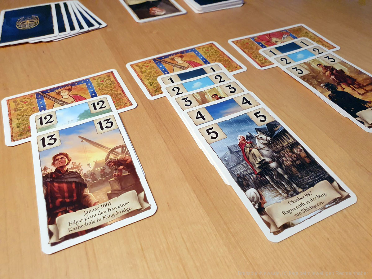 Nach dem Überfall der Wikinger im Jahre 997 erfährst Du in diesem Kartenspiel, wie die Stadt Kingsbridge aus dem weltberühmten Bestseller-Roman „Die Säulen der Erde“ von Ken Follett entstand. Mit Hilfe von Storykarten, die nach der zeitlichen Abfolge der Buchvorlage ausgelegt werden, werden alle mitspielenden Personen in das englische Mittelalter hineingeführt.