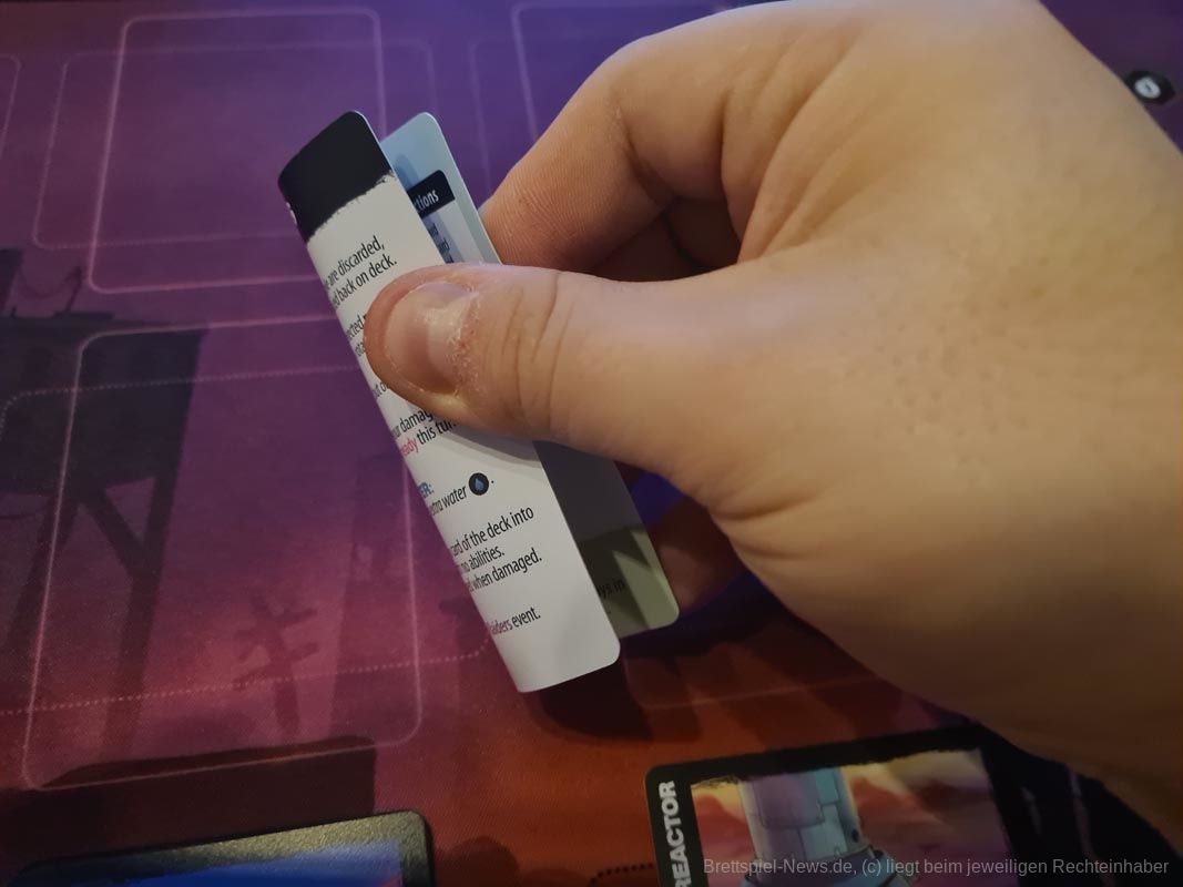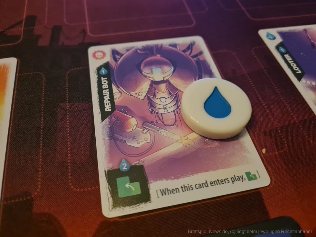 Alle ziehen Karten von demselben Stapel. Die Karten können entweder auf den Tisch gespielt oder für schnelle "Schrott"-Effekte abgeworfen werden. Um zu gewinnen, musst du deine Karten und das Wasser klug verwalten.