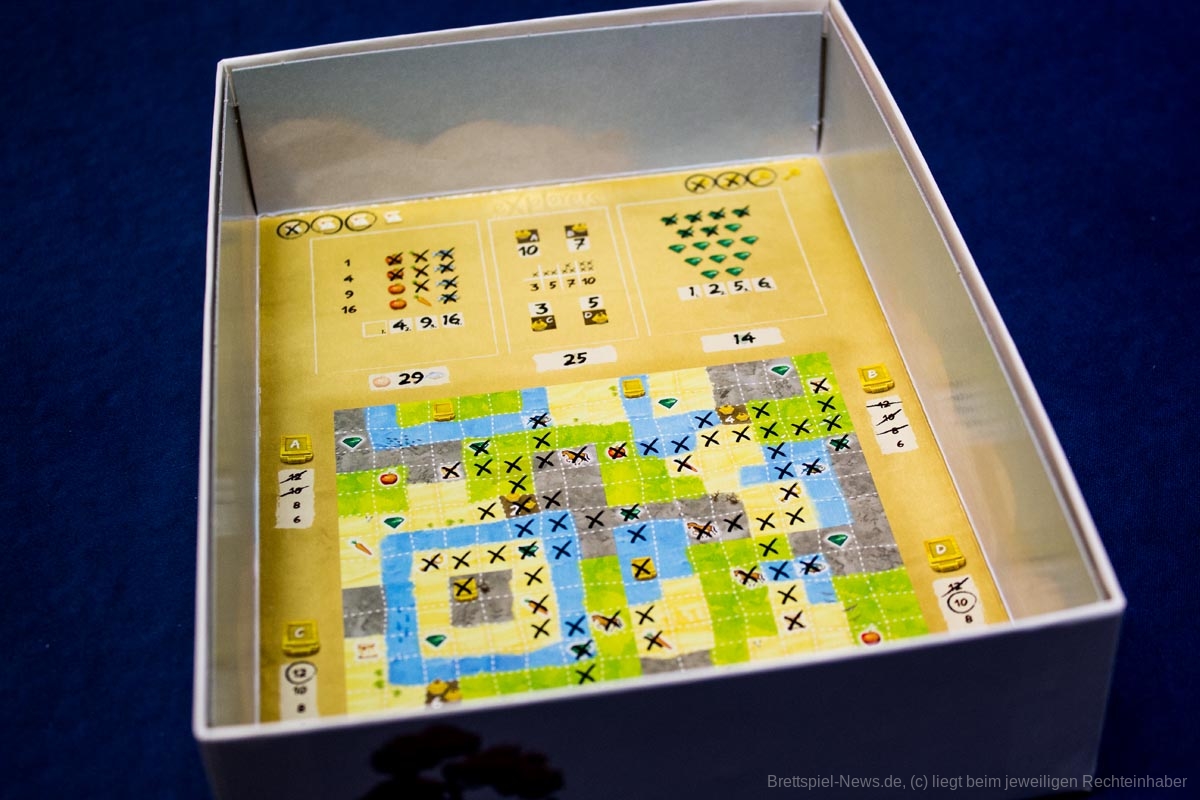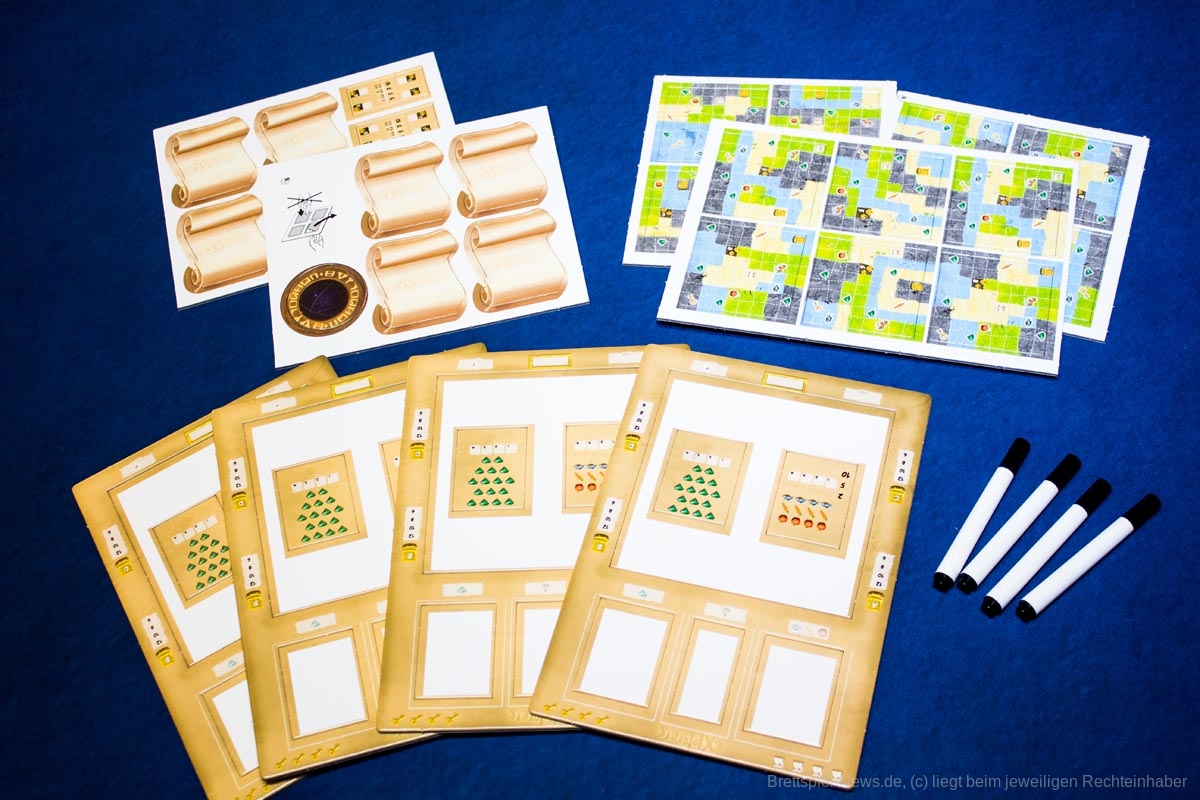 Das Spielmaterial ist abwischbar, der Box liegen Stifte bei. Der UVP liegt bei 23,99 €. Das Spiel ist aber schon für 17,49 € erhältlich – wohl direkt beim Verlag über dessen Shop bei Amazon (Stand 2.11.2021).