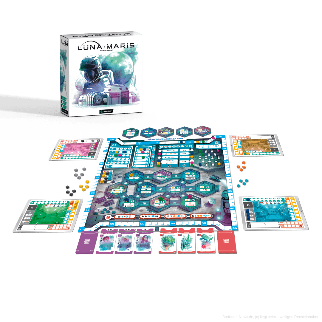 In der vergangenen Woche startete die Kampagne von Luna Maris vom brasilianischen Verlag MeepleBR in der Spieleschmiede. In dem Sci-Fi- und Worker Placement-Spiel vom neuen Autor Ricardo Amaral versuchen 1-4 Personen ihre Astronauten zu koordinieren und den Mond zu erschließen. Die Illustrationen stammen von Diego Sá und die Spielzeit wird mit 30-120 Minuten angegeben.