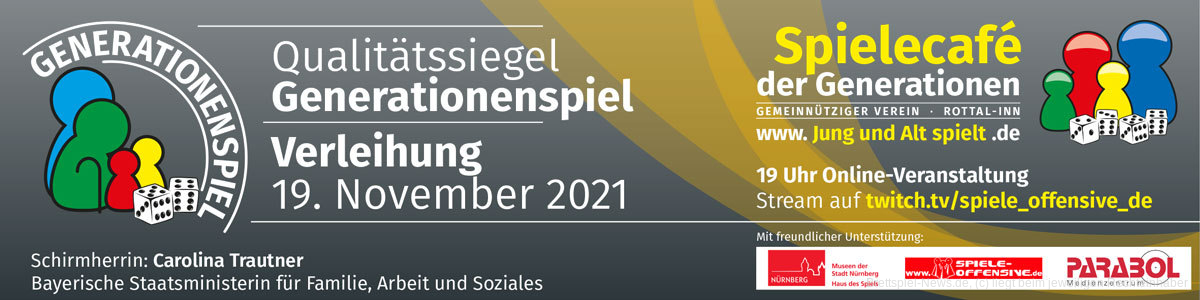 Das Siegel macht auf Spiele aufmerksam, die sich durch Material, Gestaltung und Regeln besonders für das generationenübergreifende Spielen eignen. Es wird seit 2018 vergeben und ist unter den Spieleverlagen und in der Brettspielszene inzwischen bekannt. Die Veranstaltung steht unter der Schirmherrschaft der Bayerischen Staatsministerin für Familie, Arbeit und Soziales, Frau Carolina Trautner, Mitglied des Bundesrates.
