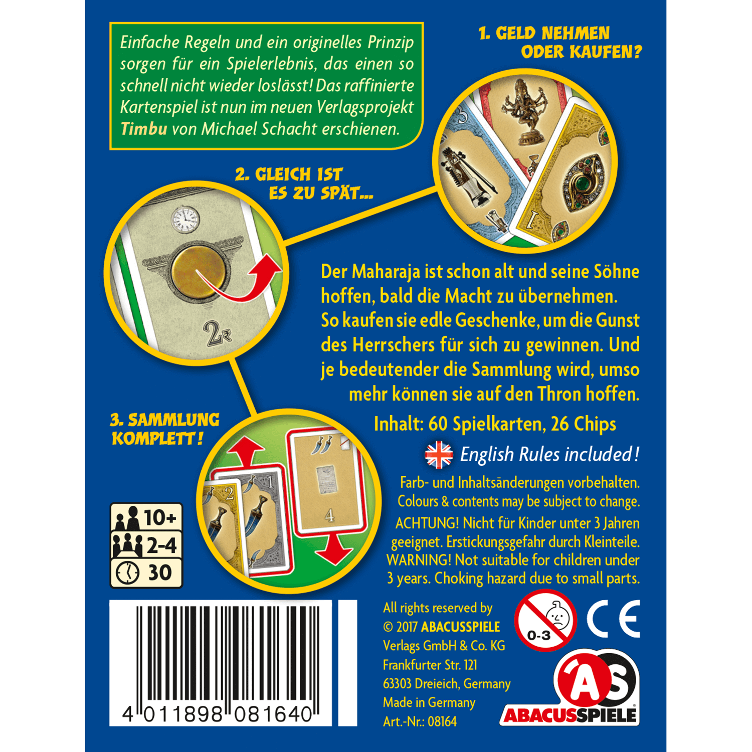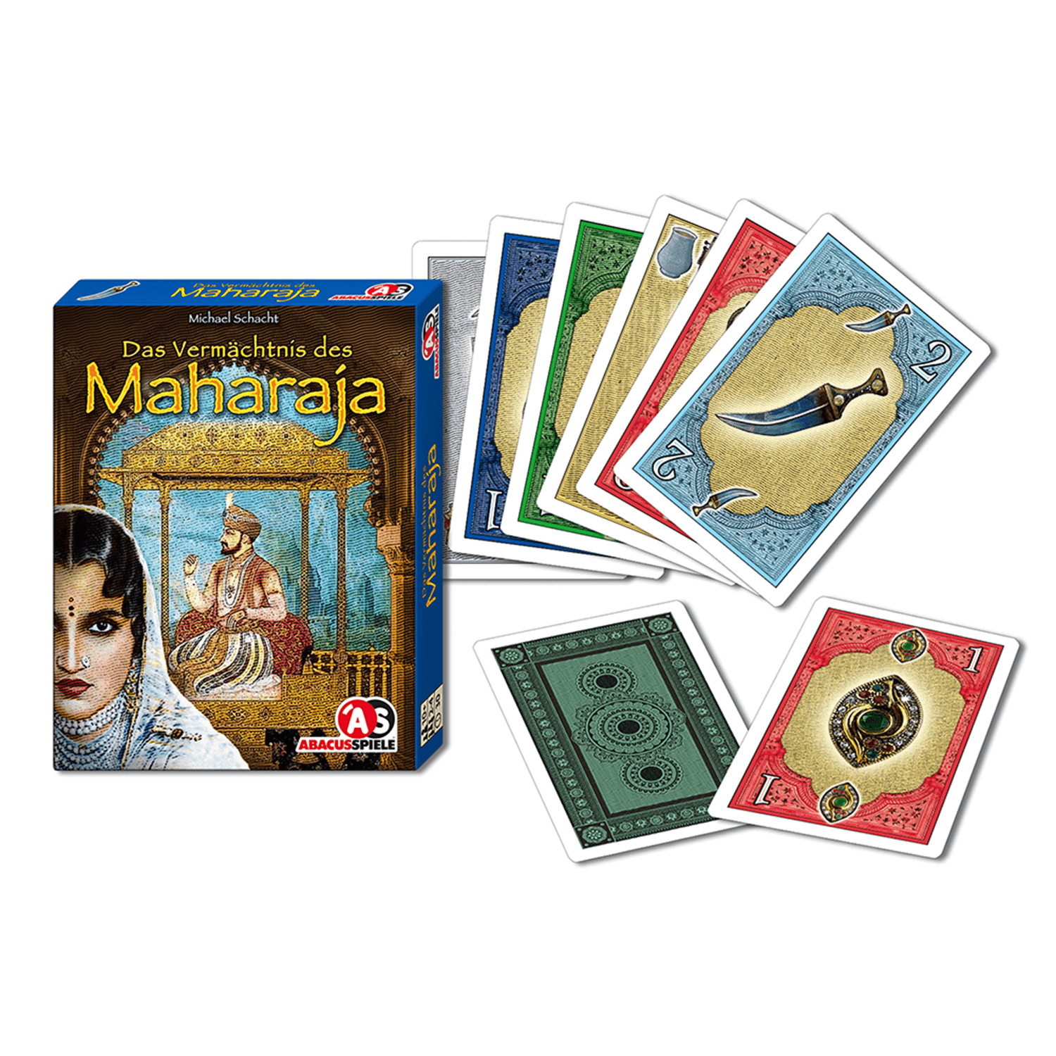 “Das Vermächtnis des Maharaja” von Michael Schacht ist ein Kartenspiel für 2-4 Spieler ab 10 Jahren. Der Maharaja ist schon alt und seine Söhne (die Spieler) hoffen, bald die Macht zu übernehmen. Das Spiel ist bereits veröffentlicht und soll 8,50 € kosten.