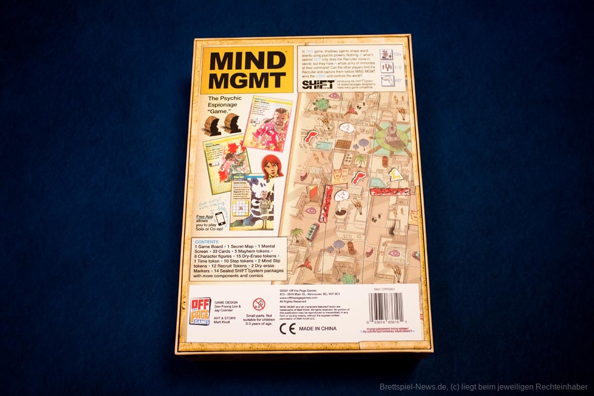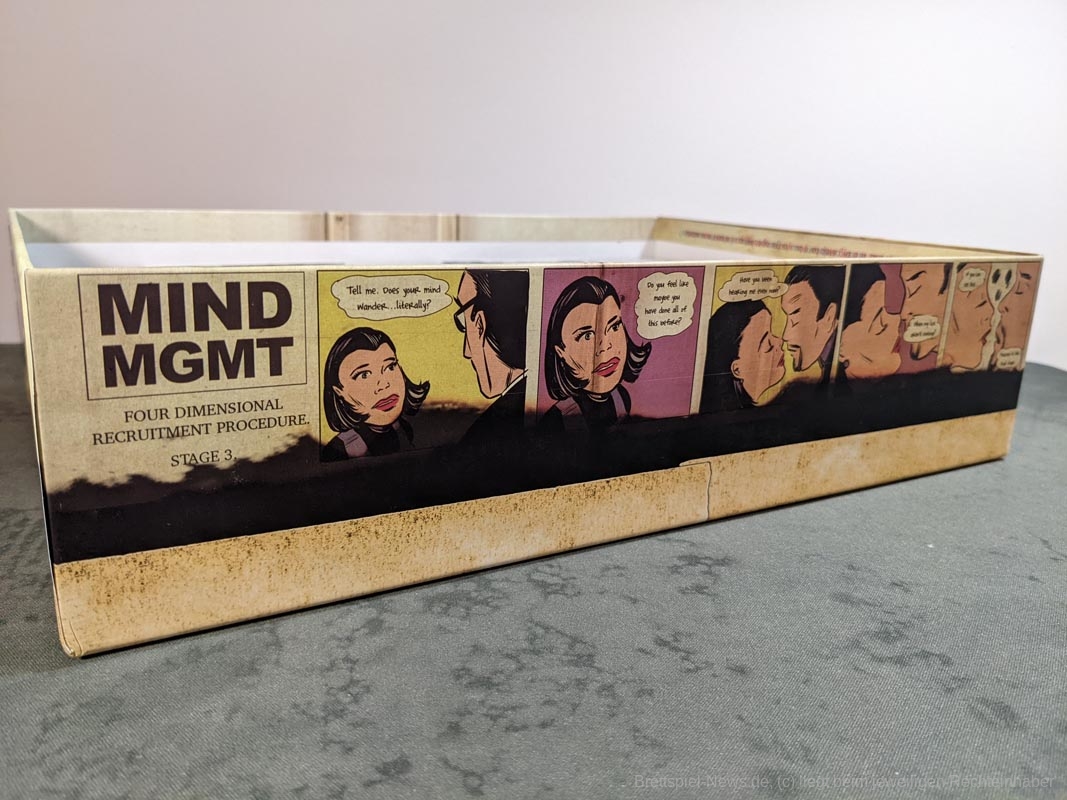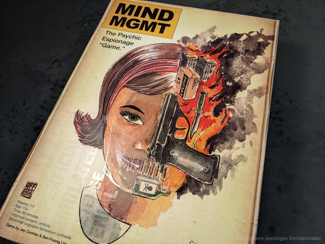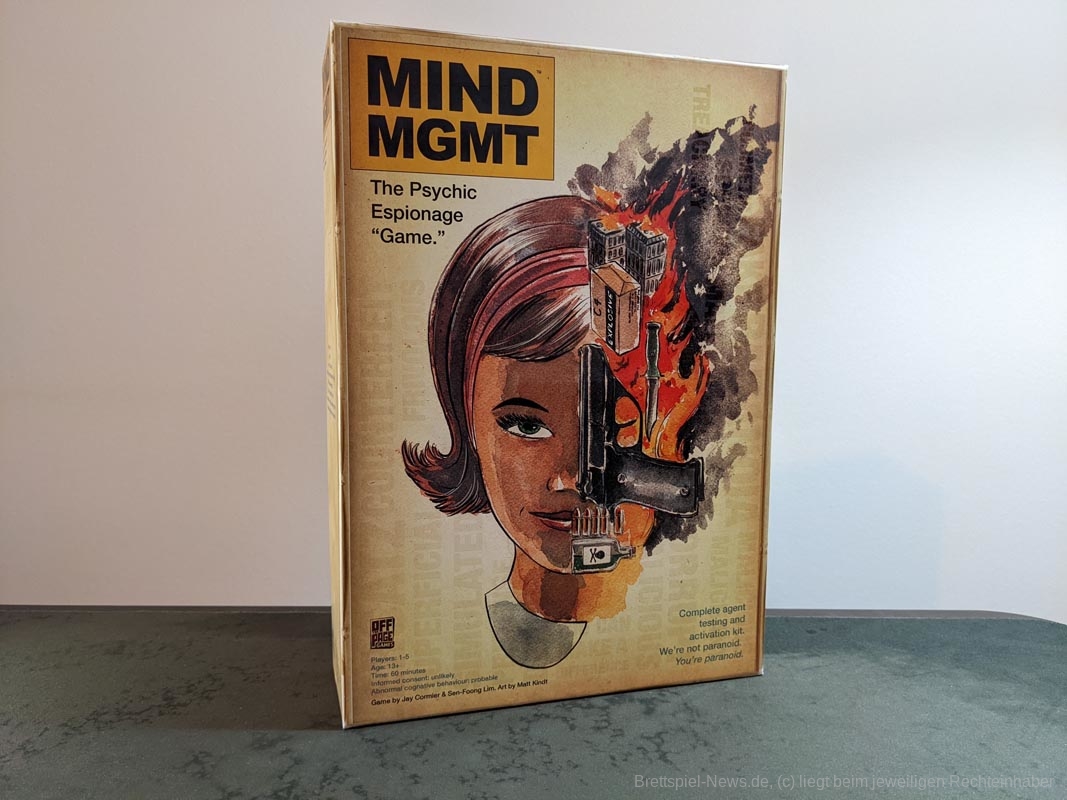 2021 wurde „Mind MGMT: The Psychic Espionage Game“ von Off the Page Games veröffentlicht. Vorerst ist keine Veröffentlichung in Deutschland geplant, uns liegt die englische Version des Spiels vor. Im Spiel übernehmen 1-5 Personen die Rolle abtrünniger Agentinnen und Agenten, um eine Verschwörung aufzudecken und eine Person steuert die Organisation Mind MGMT, um diese daran zu hindern.