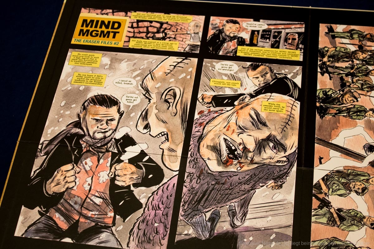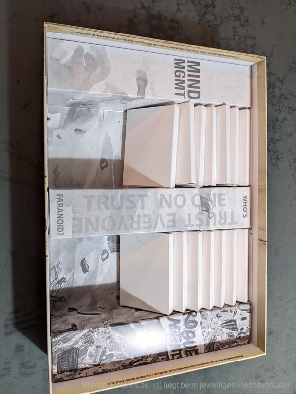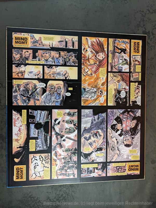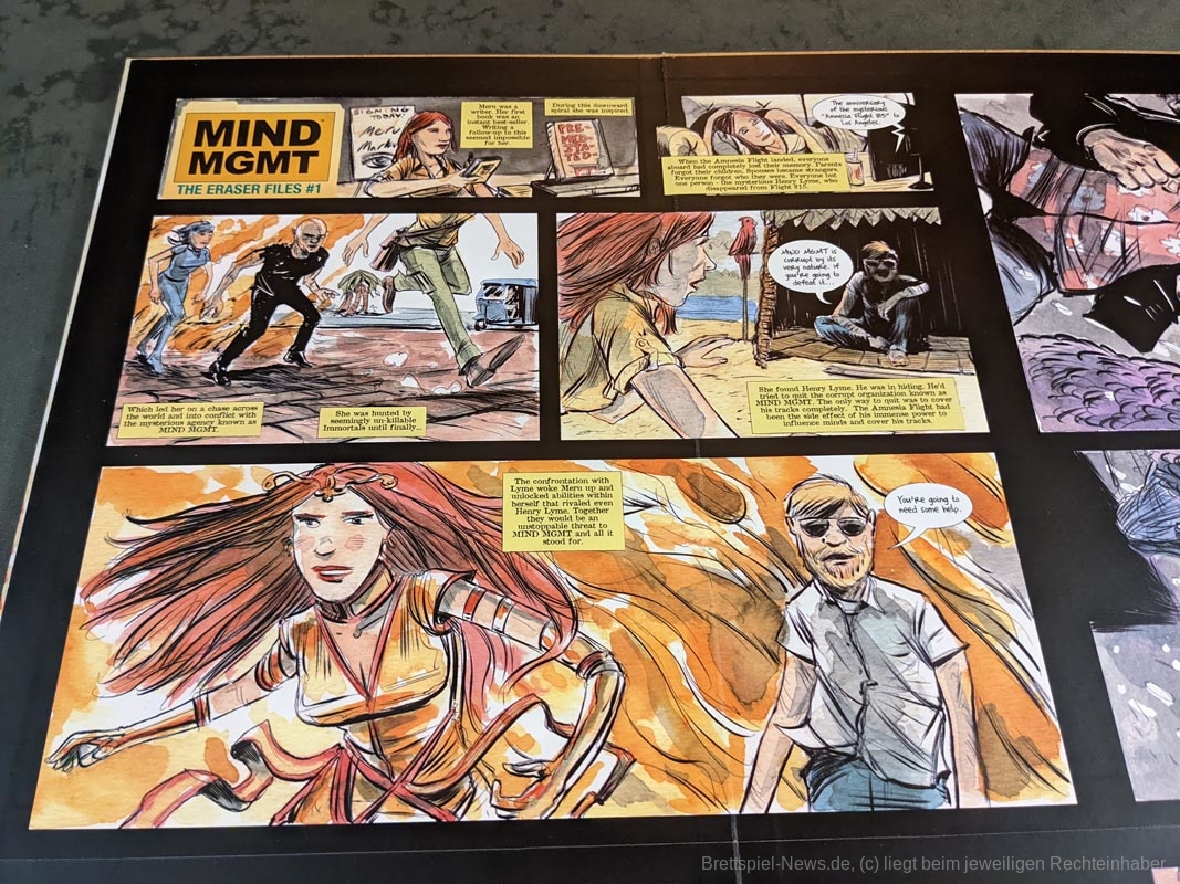 2021 wurde „Mind MGMT: The Psychic Espionage Game“ von Off the Page Games veröffentlicht. Vorerst ist keine Veröffentlichung in Deutschland geplant, uns liegt die englische Version des Spiels vor. Im Spiel übernehmen 1-5 Personen die Rolle abtrünniger Agentinnen und Agenten, um eine Verschwörung aufzudecken und eine Person steuert die Organisation Mind MGMT, um diese daran zu hindern.