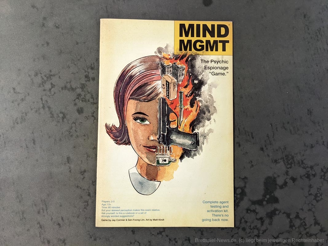 "Mind MGMT: The Psychic Espionage Game" stammt von den Autoren Jay Cormier und Sen-Foong Lim. Die Illustrationen wurden von Matt Kindt erstellt. Das Spiel bietet eine Spielzeit von 45-75 Minuten und eignet sich ab 13 Jahren.