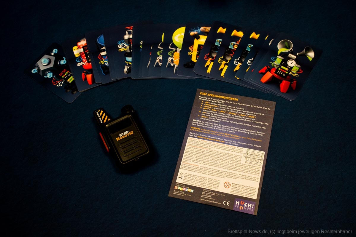 Huch! hat mit „Stop the Robots – Very Special Unit!“ ein Spiel veröffentlicht, das durch besondere Ausstattung auffallen will. In der Box ist ein Funkgerät enthalten, das per Spracheingabe Befehle erkennen soll. Das Spiel richtet sich an 1-6 Personen ab 7 Jahren und dauert pro Durchlauf ca. 10 Minuten. Die Autoren sind Jeff Castel und das Team Cubedesigners, die Grafiken stammen von Regis Torres.