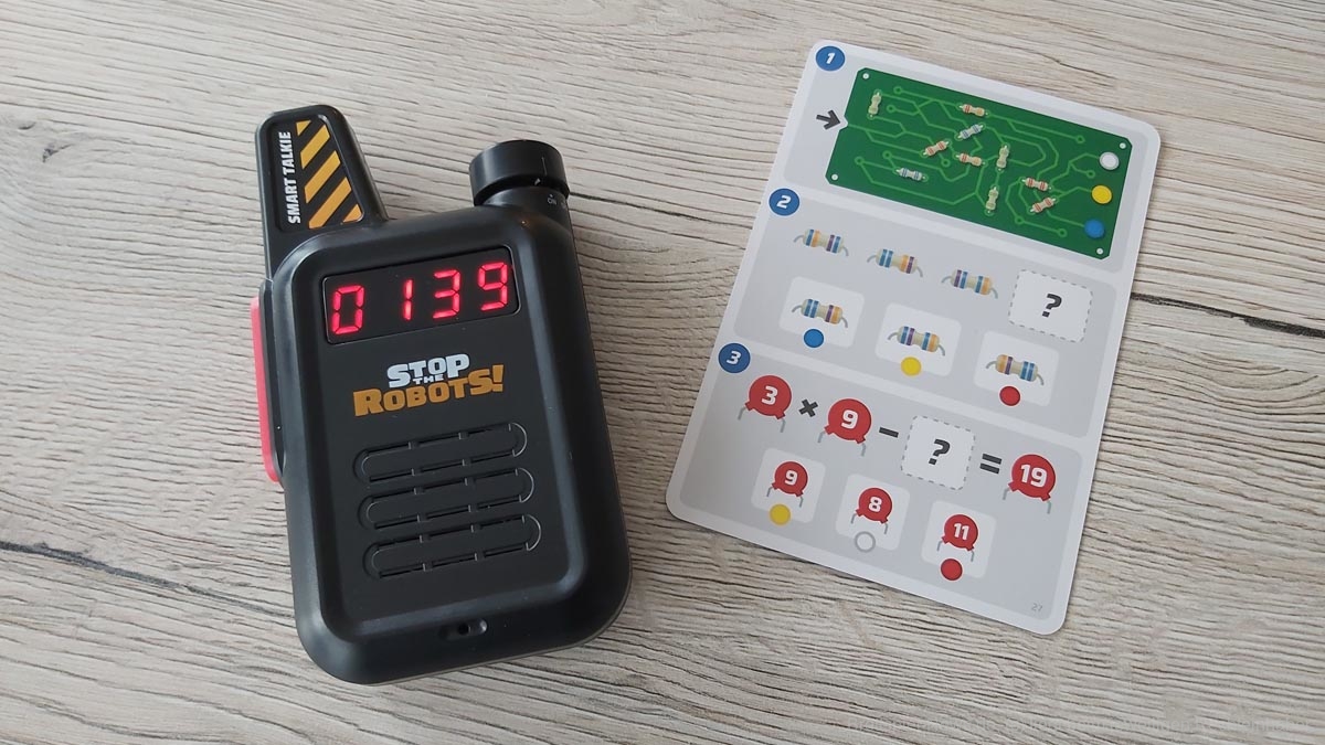 Bei „Stop the Robots - Very Special Unit" arbeitet ihr zusammen. Ihr seid ein Team! Kommuniziert mit eurer Partnerin vor Ort. Sichtet die Roboterkarten und findet heraus, mit welchem Roboter ihr es zu tun habt. Löst die kniffligen Rätsel und sagt eurer Partnerin, welche Drähte sie durchschneiden muss, damit der Roboter deaktiviert wird!
