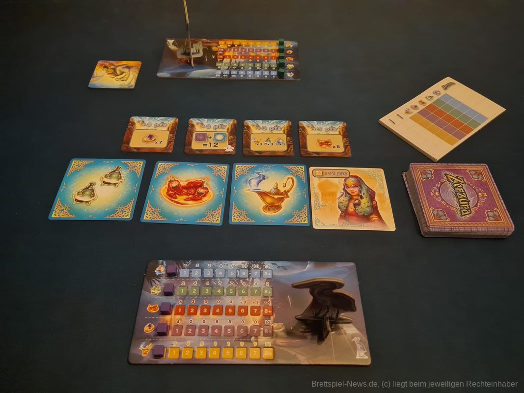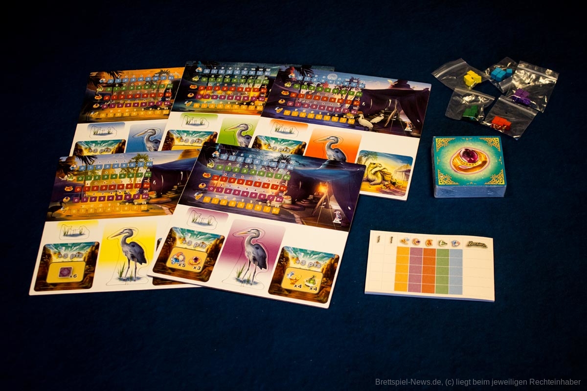 Bei Bragelonne Games ist noch knapp zum Jahreswechsel 21/22 das Spiel „Zerzura: The Oasis of Marvels“ vom Autor Romaric Galonnier erschienen. Das sehr hübsch von Sébastien Caiveau gestaltete Spiel richtet sich an 2-5 Personen ab 8 Jahren. Die Spielzeit beträgt 20 Minuten.