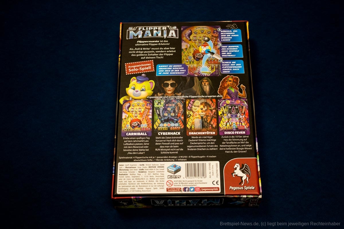 Frosted Games hat „Flippermania“ nun im Vertrieb von Pegasus Spiele veröffentlicht. Das Roll & Write Spiel setzt laut Verlag das Spielprinzip eines Flippers um, ohne dass es auf Reflexe ankommt. „Flippermania“ kann solo als auch mit bis zu vier Personen ab 10 Jahren gespielt werden. Der Preis liegt bei einem UVP von 24,99 €.