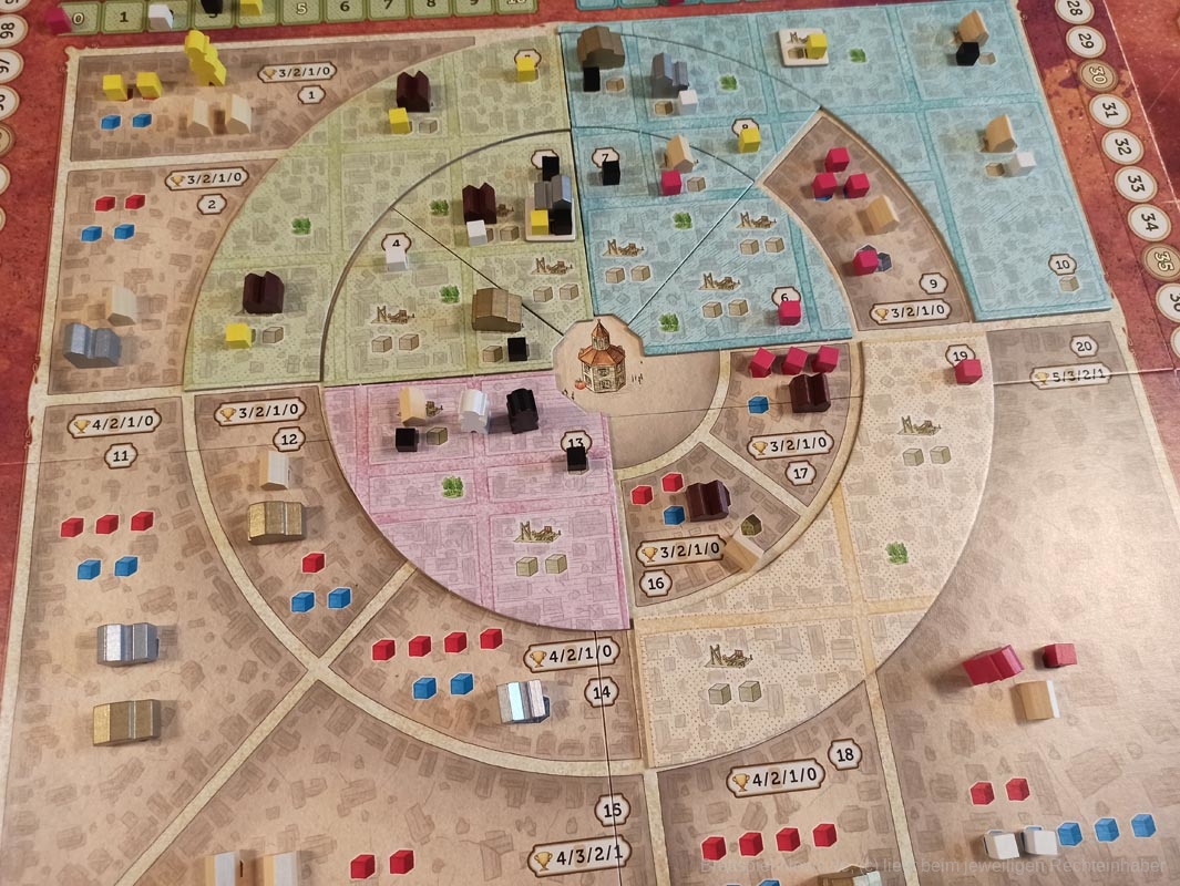 Aber nur einem von euch wird die „Quadratur des Kreises“ am besten gelingen. Denn am Spielende wird der Stadtplaner mit den meisten Siegpunkten gewinnen!