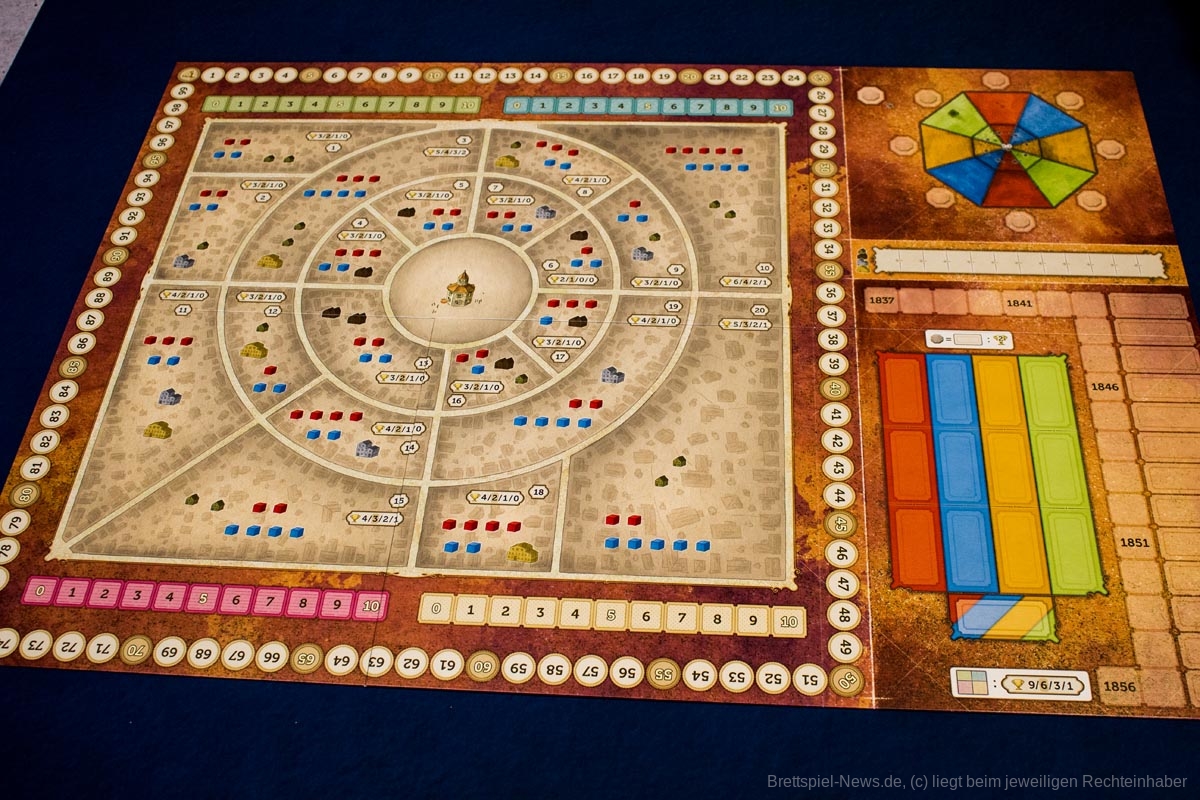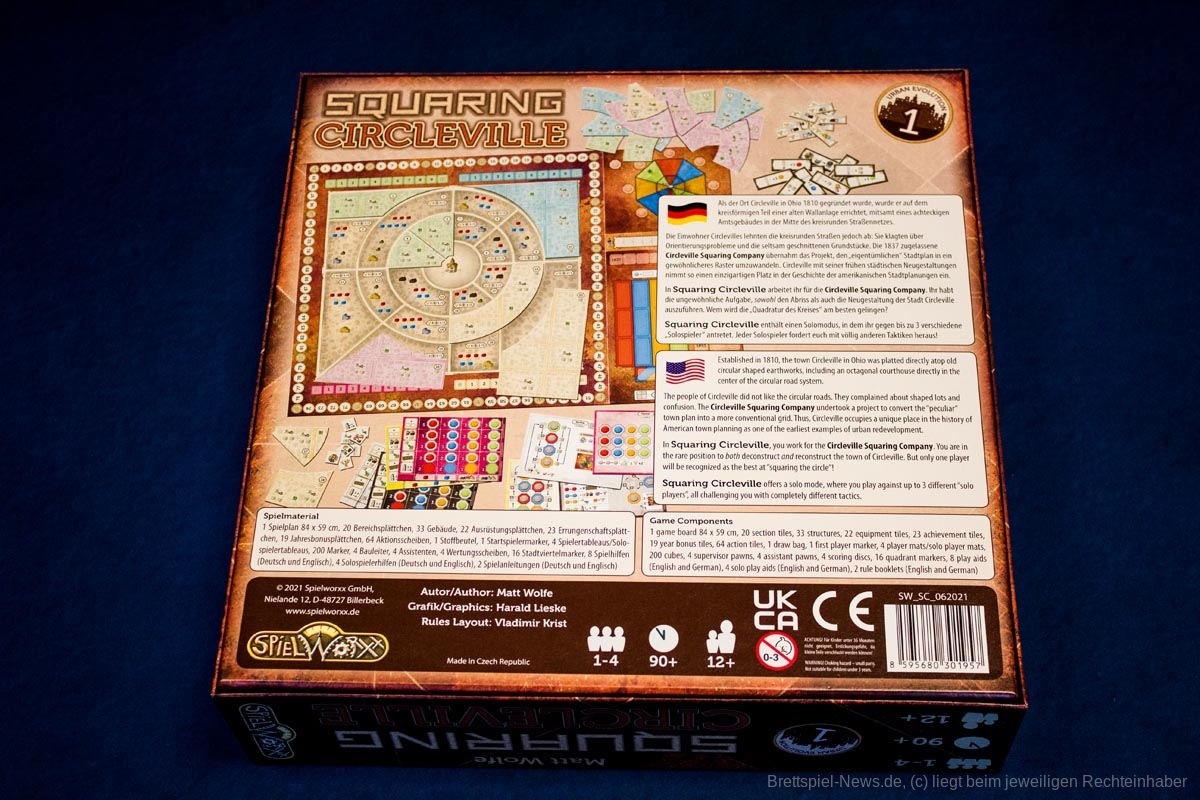 In „Squaring Circleville“ geht es um die Stadt Circleville, deren Bewohner in den 1830er Jahren gegen das kreisrunde Straßennetz aufbegehren. Diese historische Herausforderung wird im neuen Spielworxx Spiel aufgegriffen.