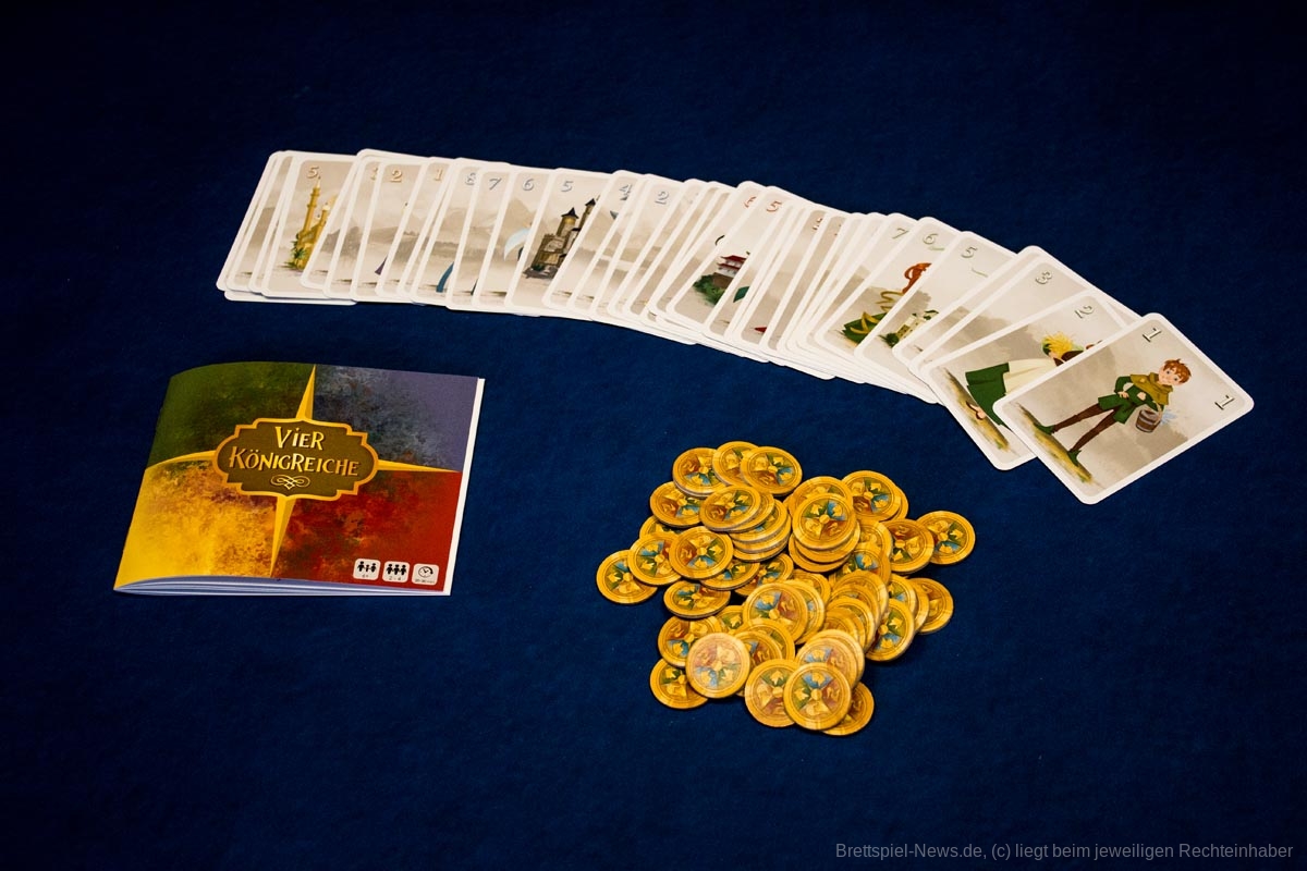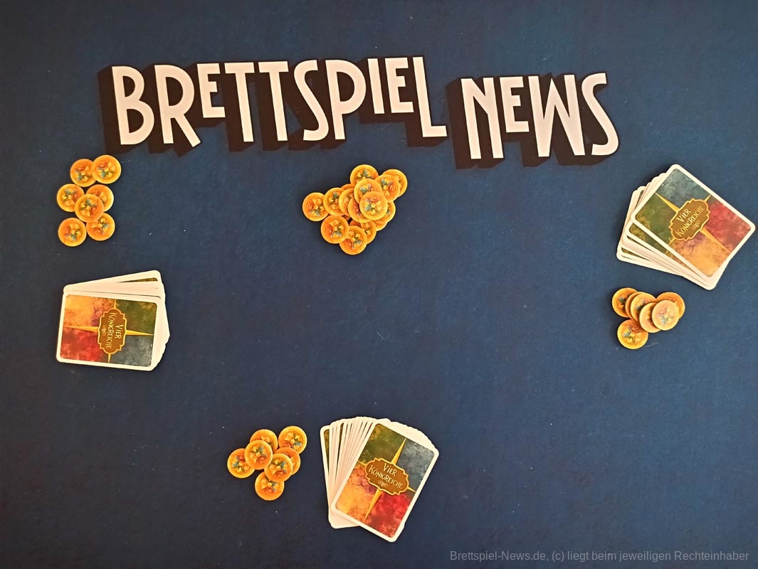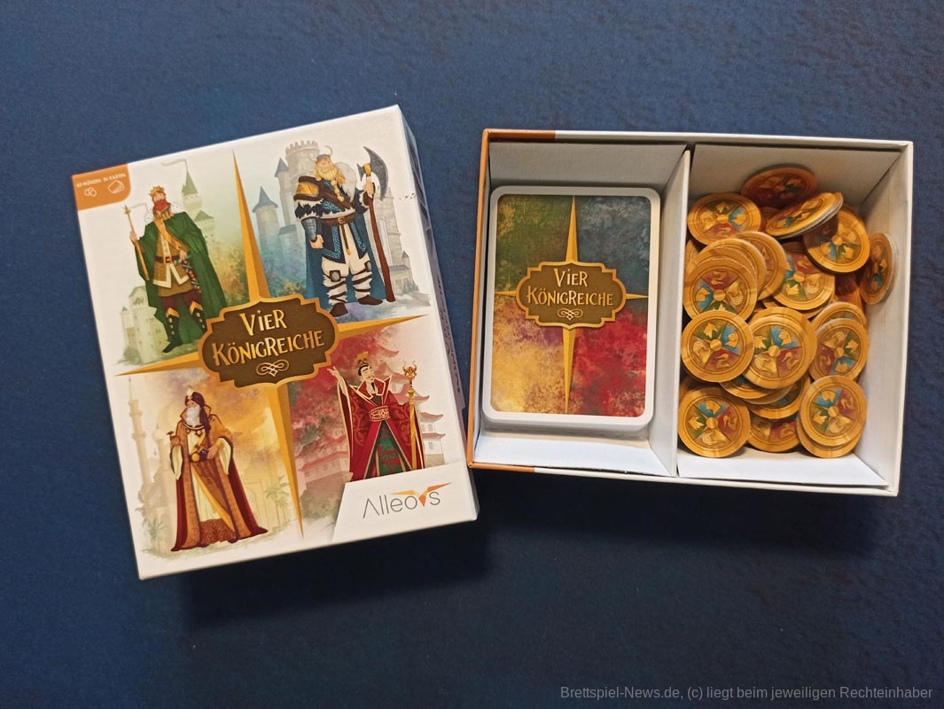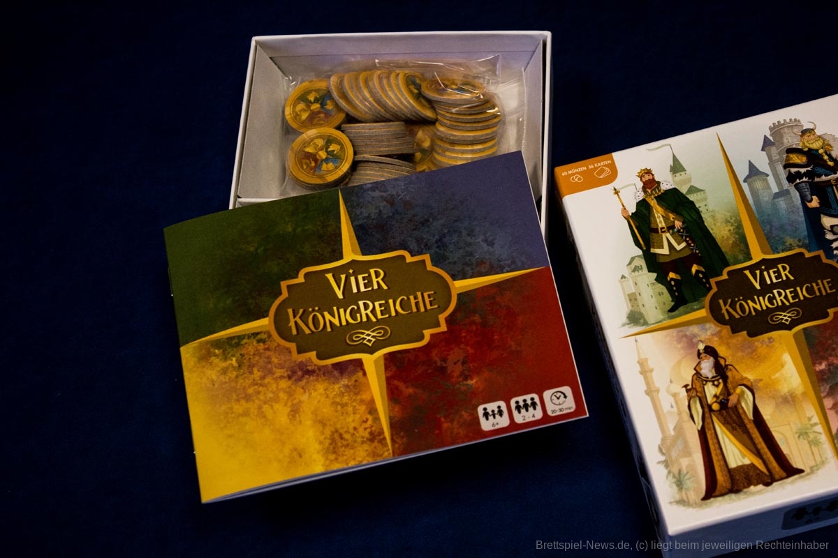 Das Spiel „Vier Königreiche“ ist 2021 veröffentlicht worden. Das Kartenspiel richtet sich an 2-4 Personen ab 6 Jahren. Das Familienspiel besteht aus 36 Karten und 60 Münzen. Das Spiel wird mehrsprachig ausgeliefert.