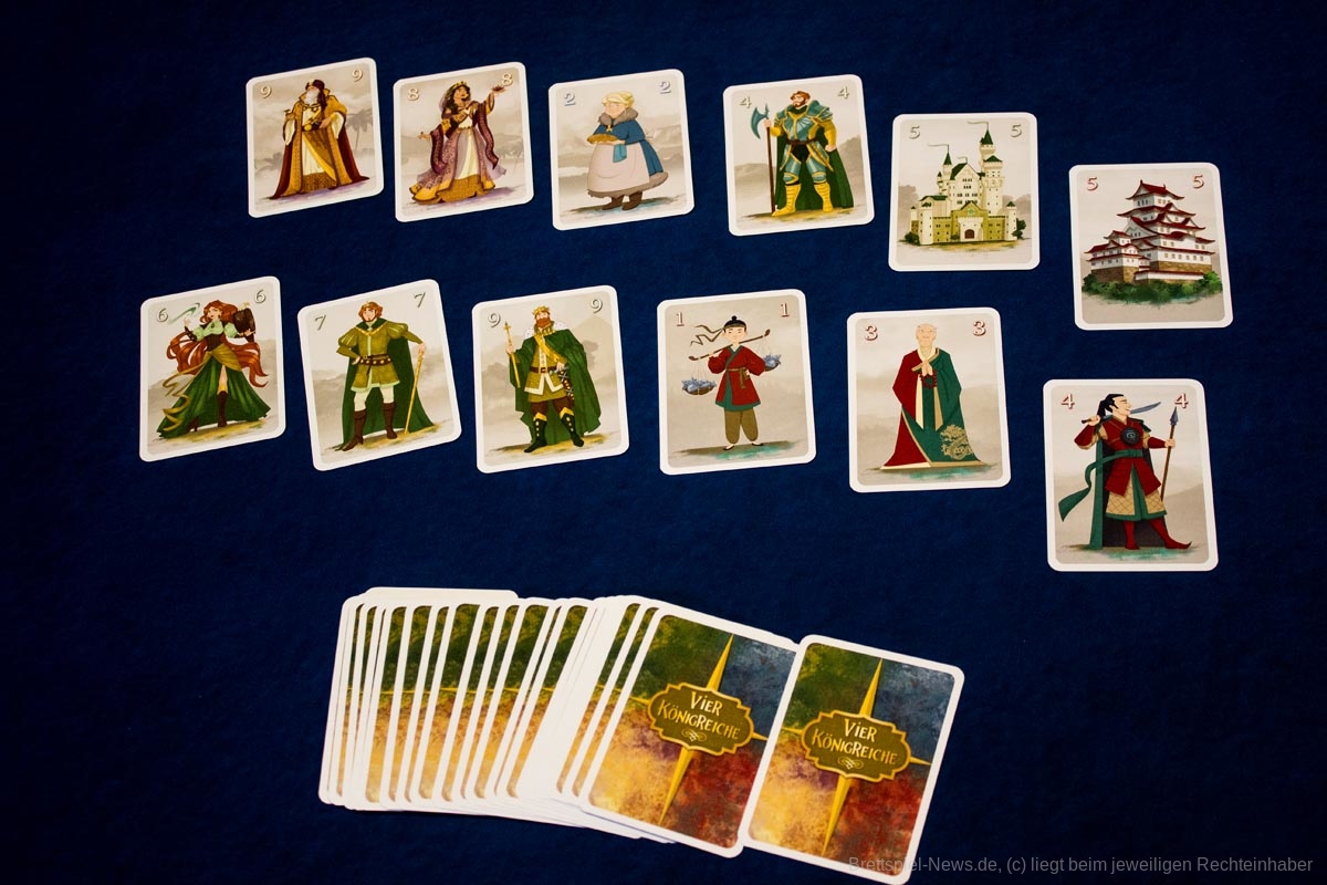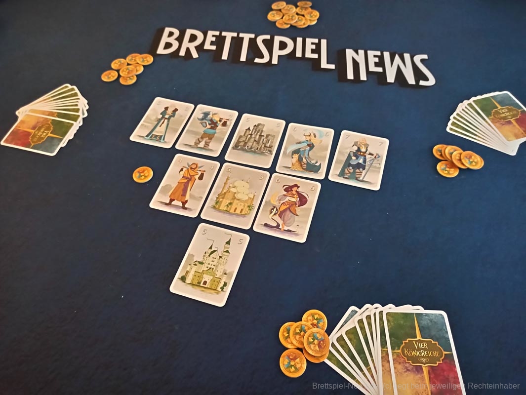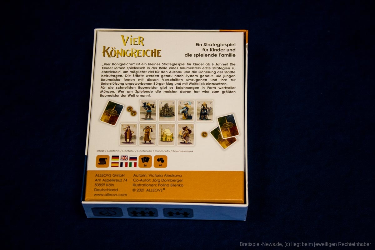 Das Spiel „Vier Königreiche“ ist 2021 veröffentlicht worden. Das Kartenspiel richtet sich an 2-4 Personen ab 6 Jahren. Das Familienspiel besteht aus 36 Karten und 60 Münzen. Das Spiel wird mehrsprachig ausgeliefert.