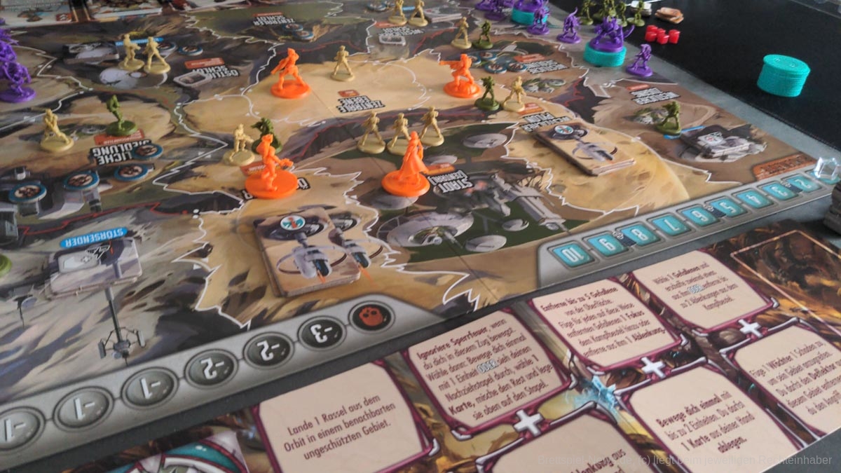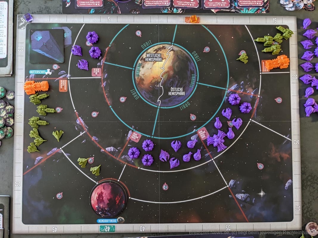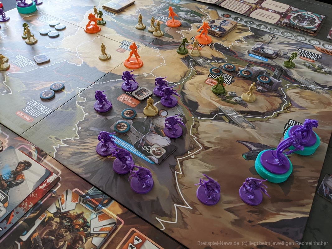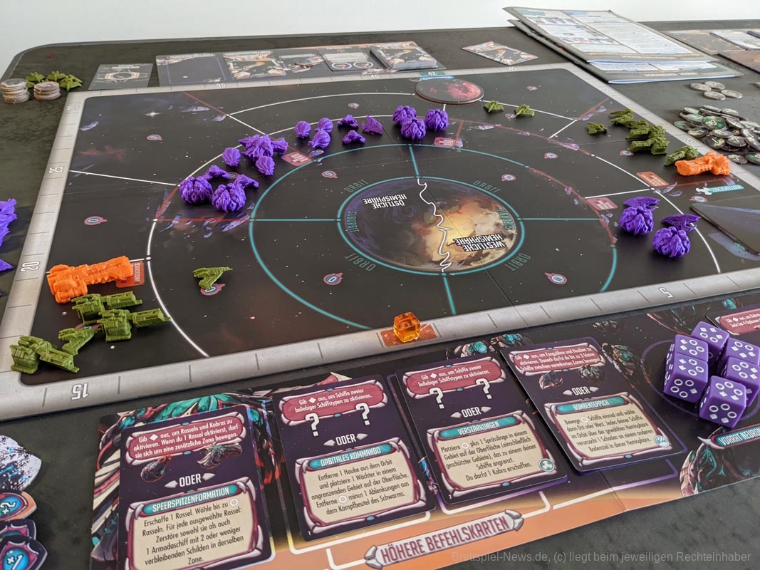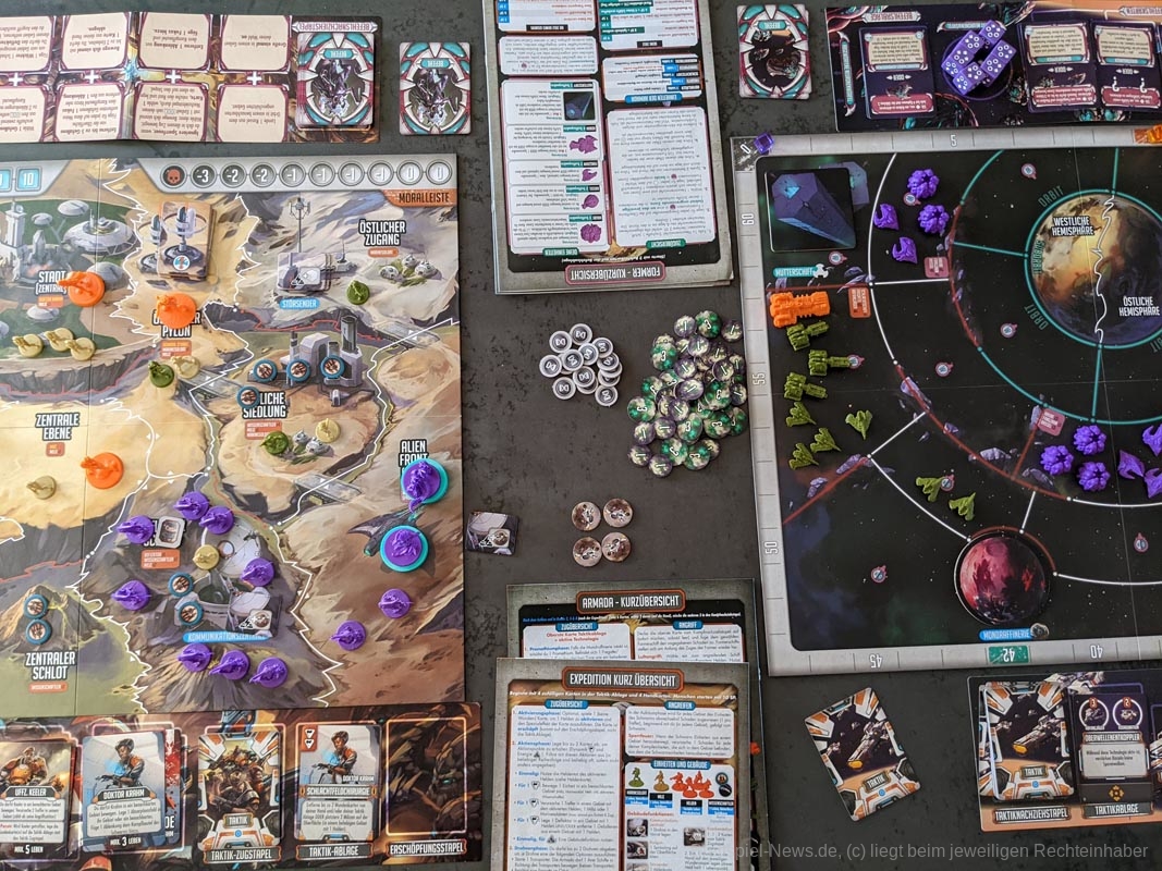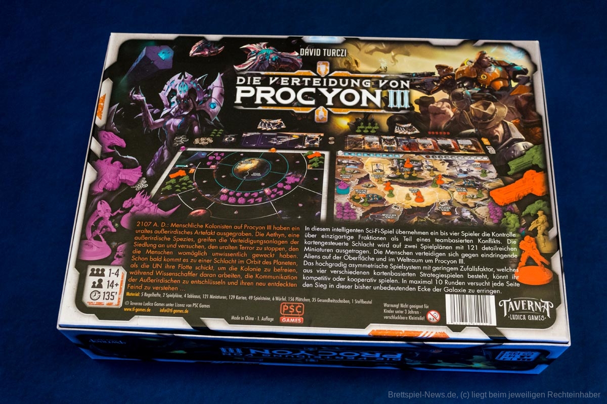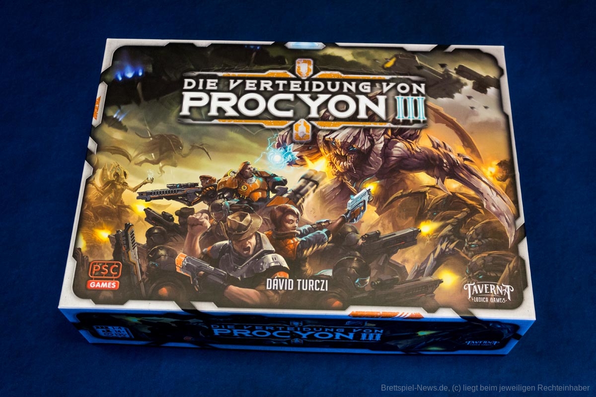 Eine Partie soll 90-120 Minuten beanspruchen. Der Autor ist Dávid Turczi und die Illustrationen stammen von Jakub Politzer. Die wirklich große Box enthält neben zahlreicher Miniaturen umfangreiches Spielmaterial in einer guten Fertigungsqualität. Der Anspruch soll sehr hoch sein, „Die Verteidigung von Procyon“ richtet sich an Kenner- und Experten-Spielerinnen und Spieler.