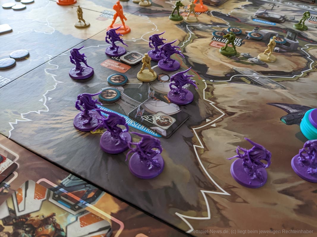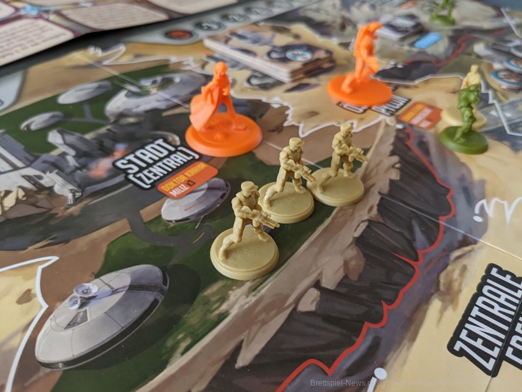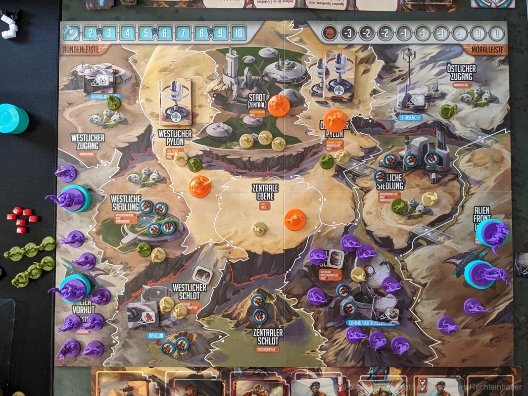 Mit „Die Verteidigung von Procyon“ ist bei Taverna Ludica Games ein besonders ausgefallenes Spiel für 1-4 Personen erschienen: Das Spiel lässt zwei Teams gegeneinander antreten. Die eine Seite versucht mit Raumschiffen und Bodentruppen die menschlichen Siedlungen zu verteidigen, während das andere Team als „außerirdisches“ Volk Aethyn mit aller Macht vordringen will.