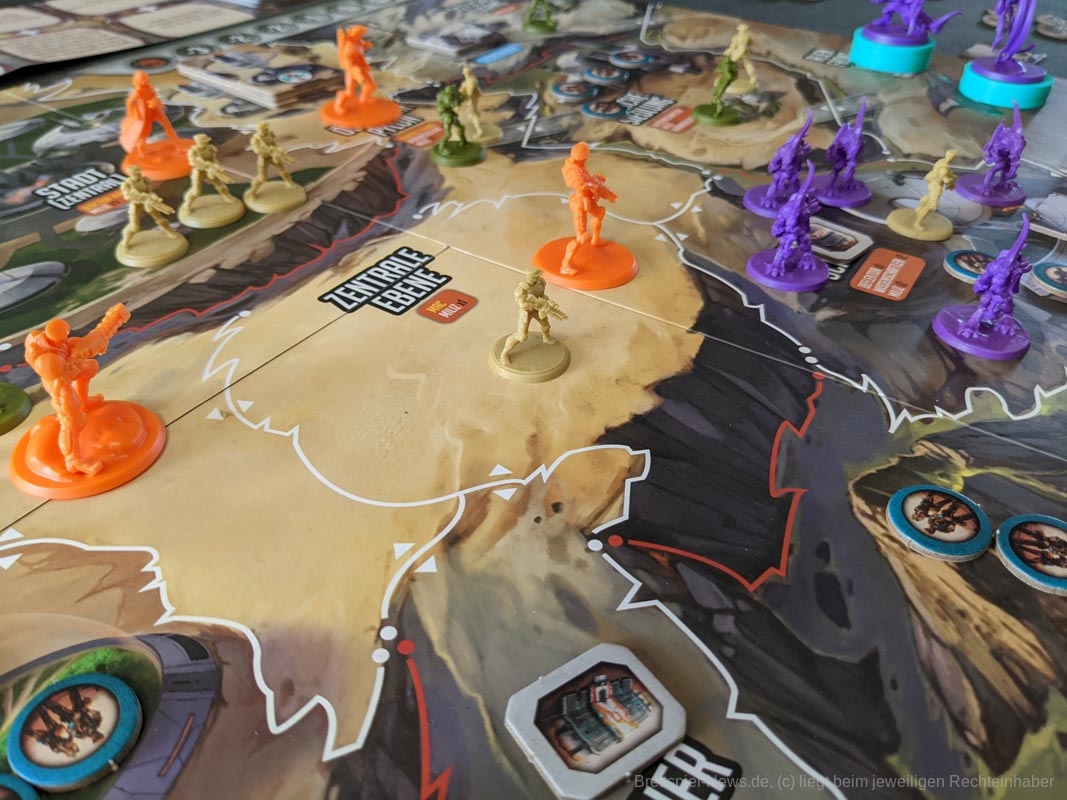 Das Spiel wird über 12 Runden gespielt, mit kartengesteuerten, glücksarmen Mechanismen, die sich zu einem Kampfstrategiespiel entwickeln - präsentiert mit unzähligen Miniaturen in einer thematischen Welt. Die beiden Befehlshabenden einer Seite müssen eng zusammenarbeiten, um sicherzustellen, dass keine Schwachstellen ausgenutzt werden kann. Die unterschiedlichen Mechanismen und Schauplätze sorgen dafür, dass alle mit ihren eigenen Aufgaben gut beschäftigt sind.