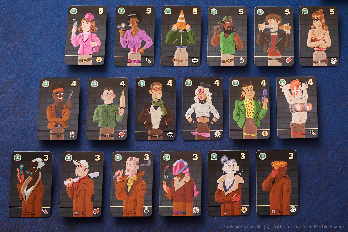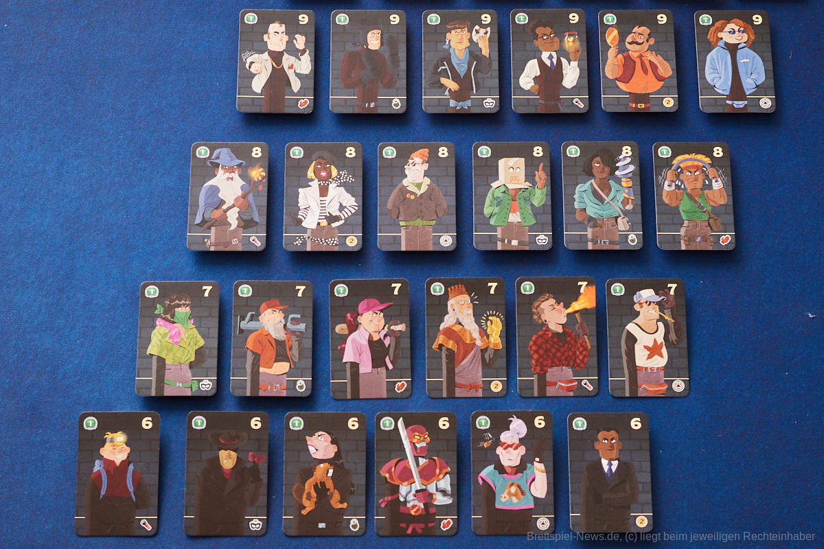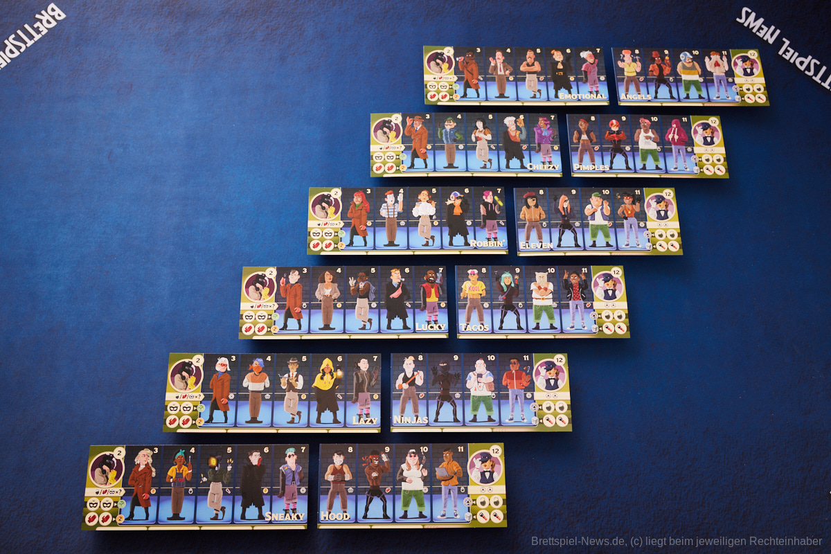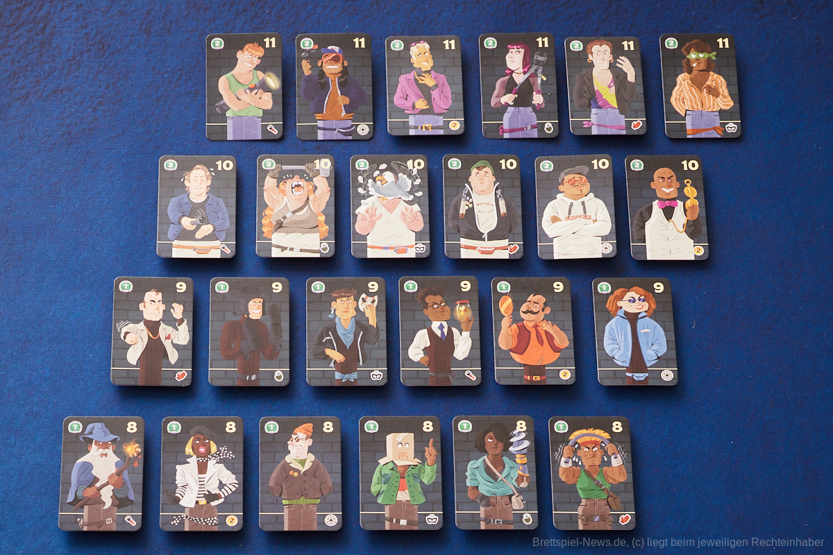 Alle haben eine Spielertafel mit 11 Bandenmitgliedern. Du kannst sie aufwerten, indem du überlappende Karten auf sie legst. Auf diese Weise ändert sich das Aussehen deiner Bandenmitglieder, wenn sie mehr Fähigkeiten erhalten.
