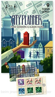 City Planner ist ein Würfelspiel für 1 bis 2 Personen ebenfalls von Alban Viard, bei dem du entscheidest, wo du deine Würfel platzieren willst, welche du blockierst und welche du beeinflusst, um am Ende das meiste Geld und somit die meisten Siegpunkte zu sammeln. Die Illustrationen stammen von Ilya Baranowsky und Kwanchai Moriya (Dinosaur Island, Cryptid, Siderische Konfluenz) und die Spielzeit soll etwa 10-20 Minuten betragen.