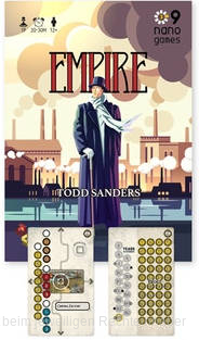 Empire ist ein kniffliges Worker Placement-Solospiel von Todd Sanders, bei dem du mit Hilfe von Würfeln deine Arbeitskräfte, Rohstoffe sowie Verbindungen zwischen aneinander liegenden Karten anzeigst. Die Illustrationen stammen ebenfalls von Todd Sanders und die Spielzeit soll 15-30 Minuten betragen.