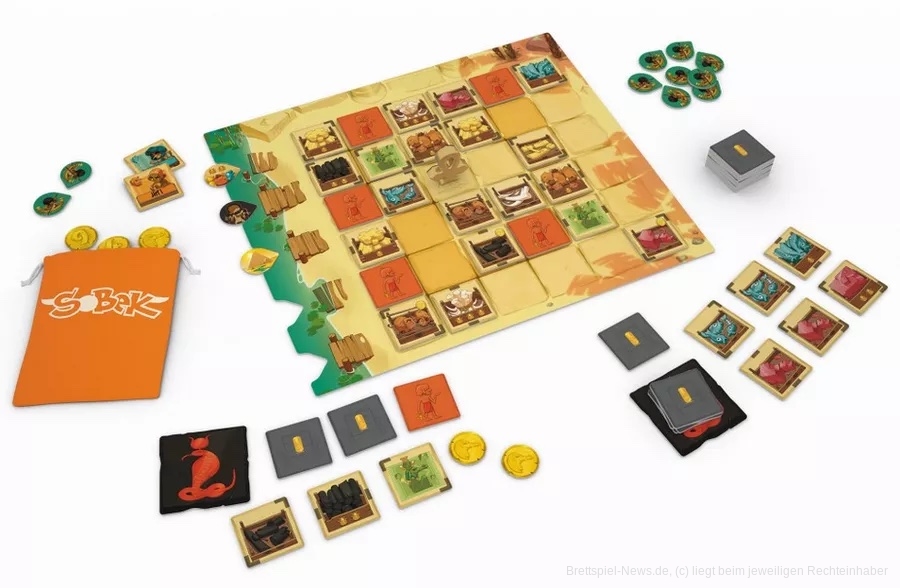 Bei Catch Up Games ist 2021 das reine 2 Personen Spiel "Sobek: 2 Players" erschienen, das nun im März 2022 als "Sobek - Das Duell" bei Pegasus veröffentlicht wird. In ca. 20 - 30 Minuten Spielzeit gilt es, die besten Plättchen auf dem Markt zu ergattern und diese zum richtigen Zeitpunkt für Siegpunkte zu verkaufen. Die Autoren Bruno Cathala (Five Tribes, Abyss, Kanagawa) und Sébastian Pauchon (Jamaica, Yspahan) haben hier einige interessante Mechanismen zusammen gemischt, die das Spiel ganz schön knifflig machen und u.a. an ihre Erfolgsspiele Kingdomino (Cathala) und Jaipur (Pauchon) erinnern. Die Illustrationen stammen von Xavier Gueniffey Durin (Seasons, Tokaido, Lords of Xidit).