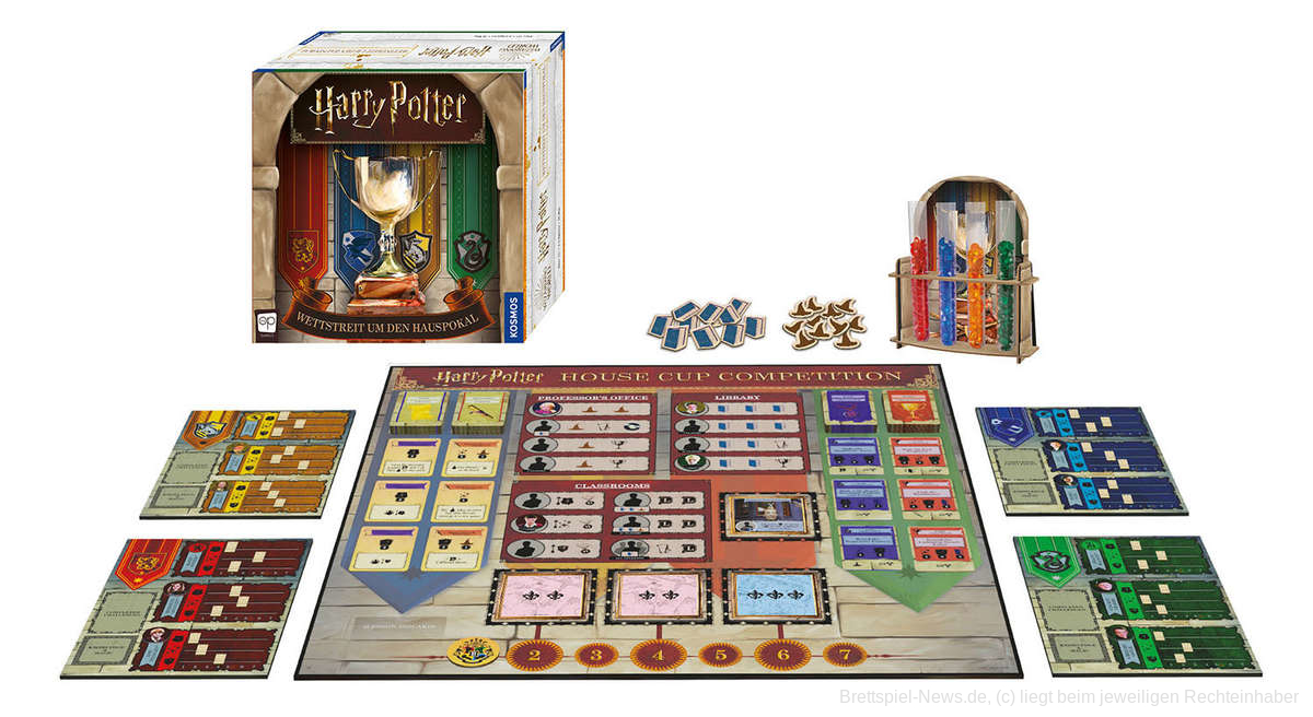 Das 2020 erschiene Spiel „Harry Potter: House Cup Competition“ erscheint in Deutschland unter dem Titel „Harry Potter: Wettstreit um den Hauspokal“ beim Kosmos Verlag. Das Spiel richtet sich an 2-4 Personen ab 11 Jahren. Die Spieldauer beträgt laut Verlag rund 75 Minuten, der UVP liegt bei 54,99 € und ab März soll das Spiel im Handel verfügbar sein. Die Autoren sind Nate Heiss und Kami Mandell, die Illustration stammt von Delaney Mamer.