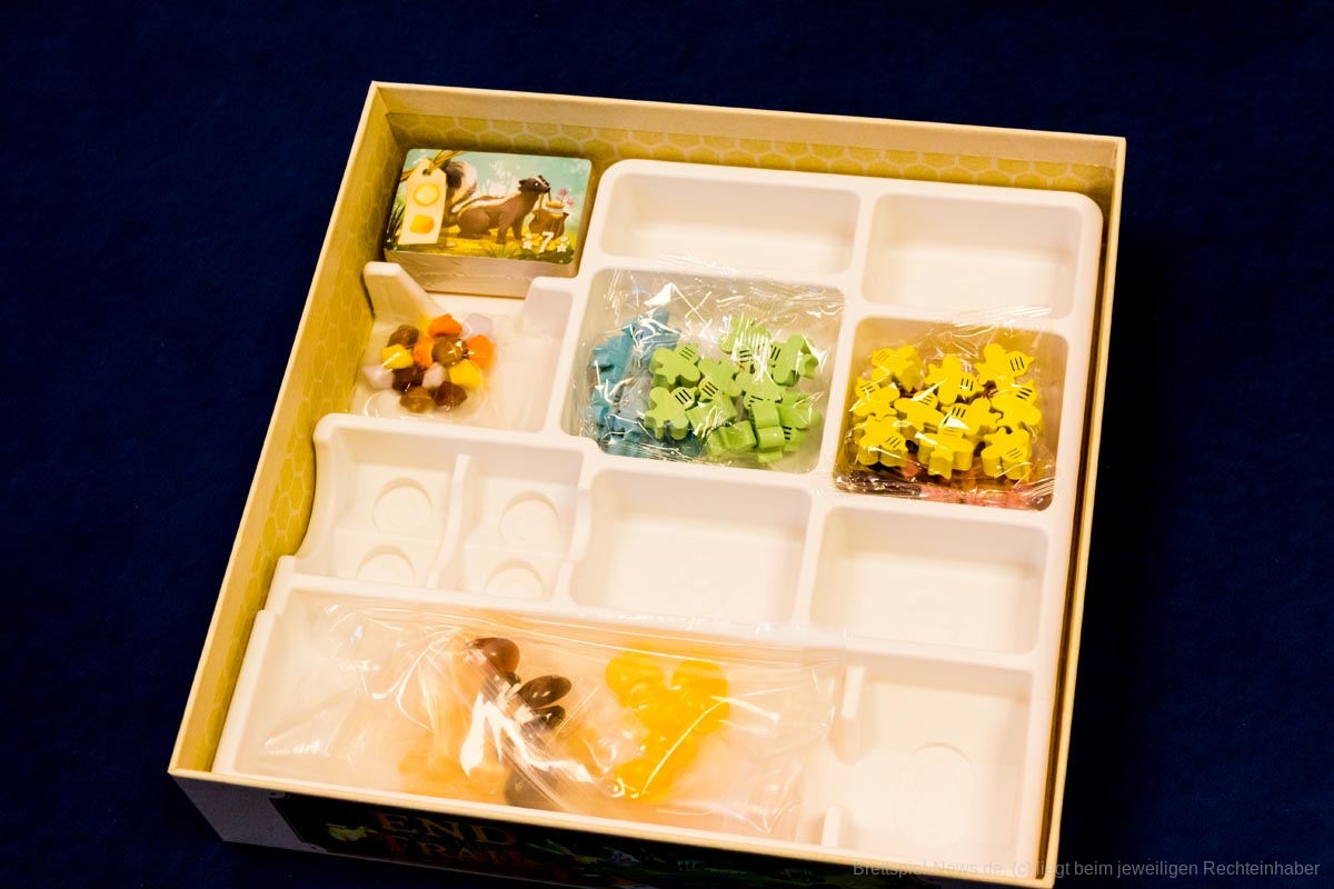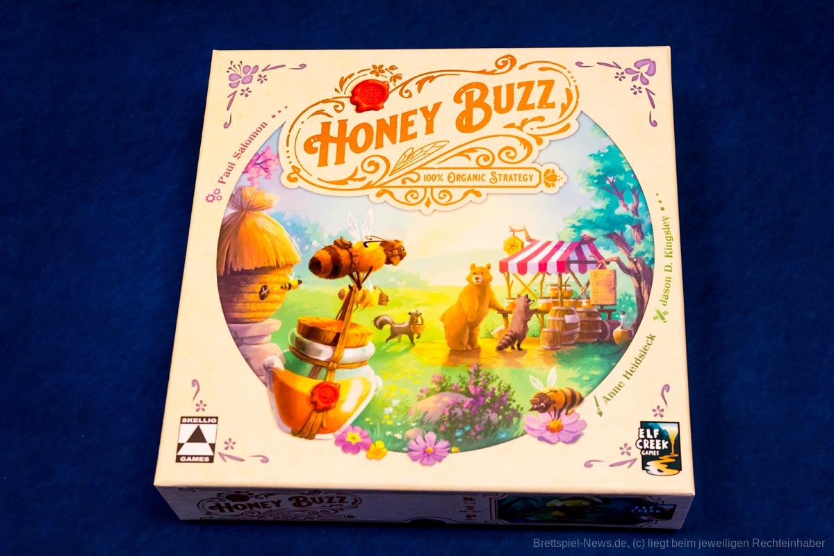 Wer auf „Honey Buzz“ von Skellig Games gewartet hat, könnte aktuell leer ausgehen. Der Verlag hat im eigenen Shop das Spiel bereits als „sold out“ gekennzeichnet. Das Spiel ist jedoch vorbestellbar und wird nachproduziert. Aktuell ist es im Handel noch zu kaufen, unter anderem bei FantasyWelt.de Der Autor ist Paul Salomon, die putzigen Illustrationen stammen von Anne Heidsieck.