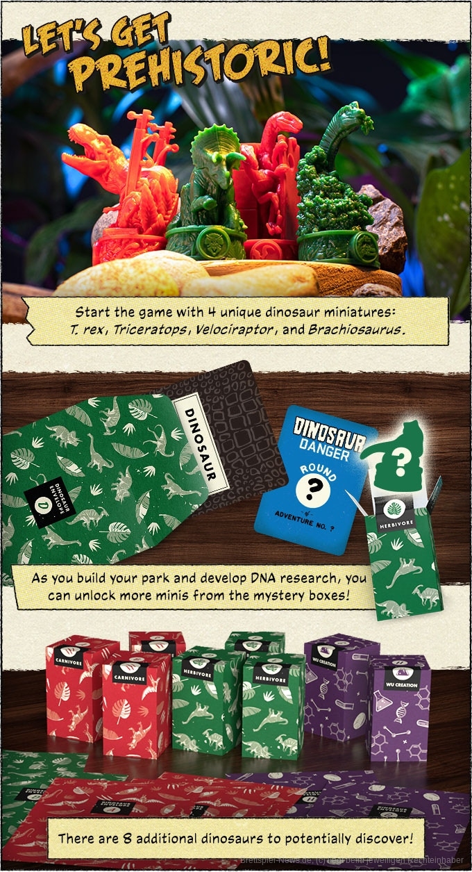 Es gibt genauere Infos zu den Materialien - unter anderem sind die 4 Start-Dinosaurier zu sehen. Ebenfalls gibt es weitere Einblicke in die Spielmechanik und den Spielablauf. "Jurassic World: Legacy of Isla Nublar" wird es in dieser Kampagne nur in englischer Sprache geben - weitere Sprachen könnten für den Retail-Markt folgen. Der Grundpreis (und die einzige Kaufoption) ist eine Unterstützung für 120$. Zu diesem Preis kommen neben Steuern nochmal 31$ Versand hinzu. Und genau das ist momentan auch Kritikpunkt vieler Interessierter: