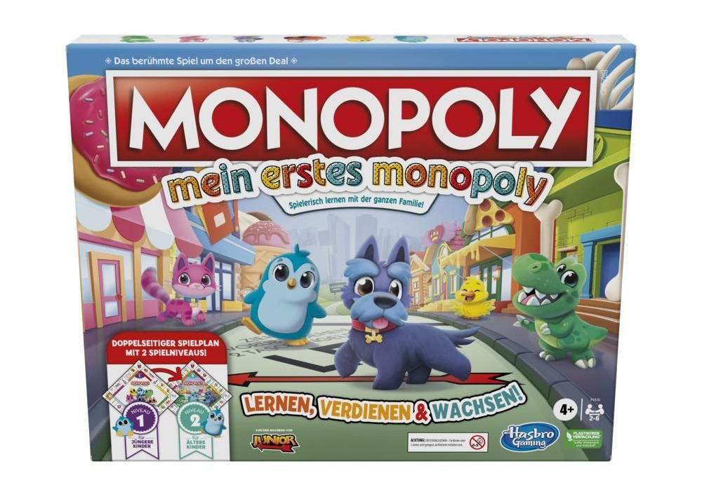 Anlässlich zum 87. Geburtstag und mit der Überzeugung, dass Monopoly viele erzieherische Aspekte fördern könne, wurde von Hasbro eine Version für die jüngeren Brettspielerinnen und Brettspieler herausgebracht: "Mein erstes Monopoly". Diese Version bietet unter anderem ein doppelt bedrucktes Spielbrett, mit dessen Hilfe man das Spielniveau anpassen kann. Auch die Grafik orientiert sich an die jüngere Zielgruppe.