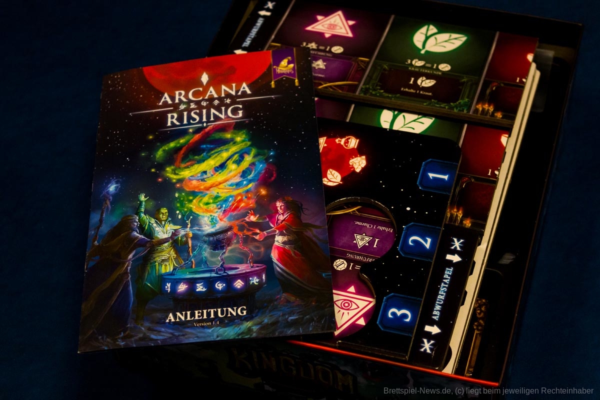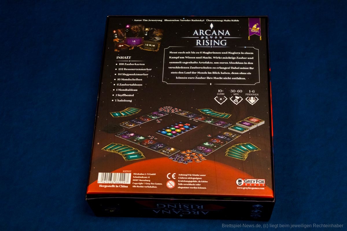 „Arcana Rising“ ist bei Miraculus als deutsche Version erschienen. Das Kartenspiel richtet sich an 1-6 Personen ab 10 Jahren. Der Autor des Spiels ist Tim Armstrong (II), die Illustrationen stammen von Yaroslav Radetskyi.