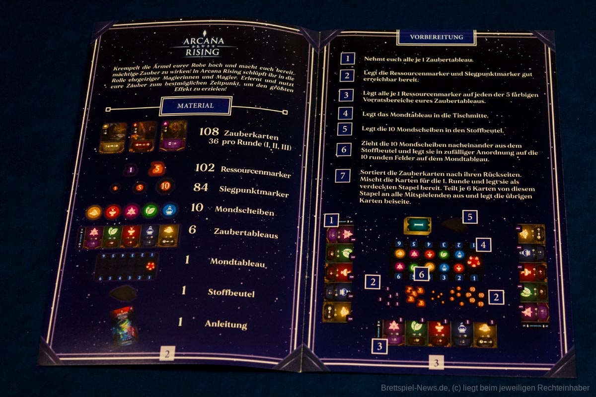 Draftet in "Arcana Rising" von Tim Armstrong drei Runden lang Karten und setzt daraus eine magische Engine zusammen, die eure gesammelten Artefakte antreibt. Achtet auf den Verlauf der Monde, um eure Zauber zum besten Zeitpunkt zu wirken!
