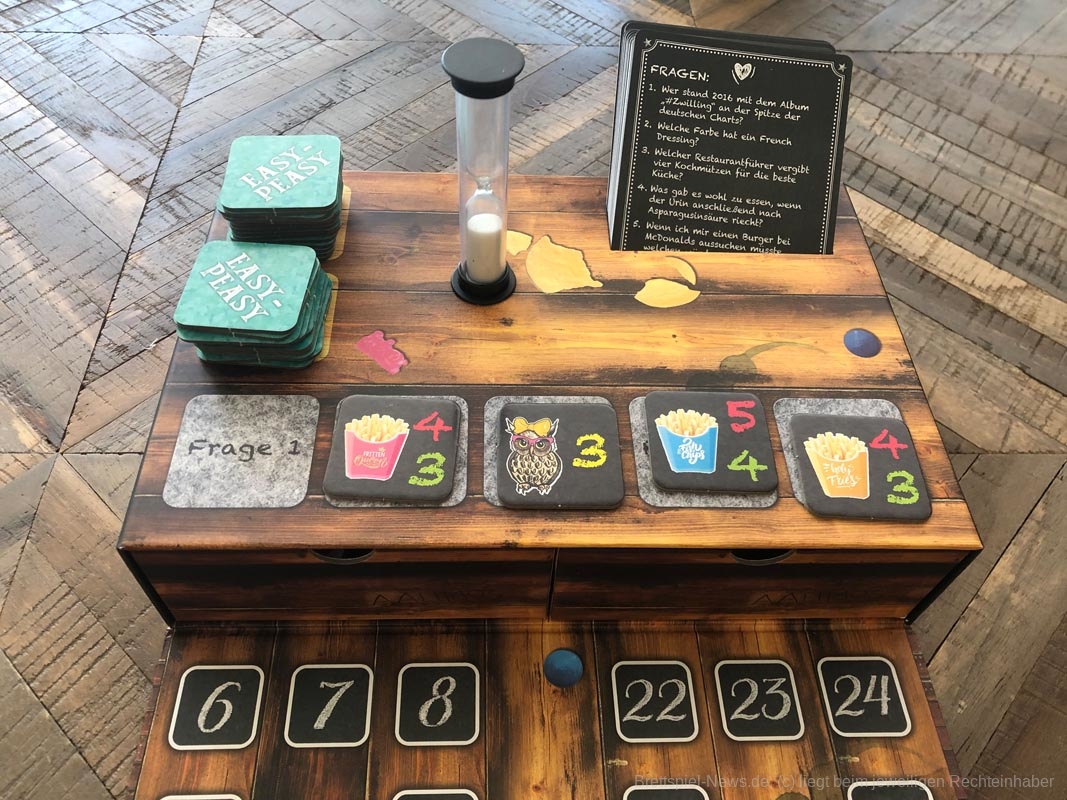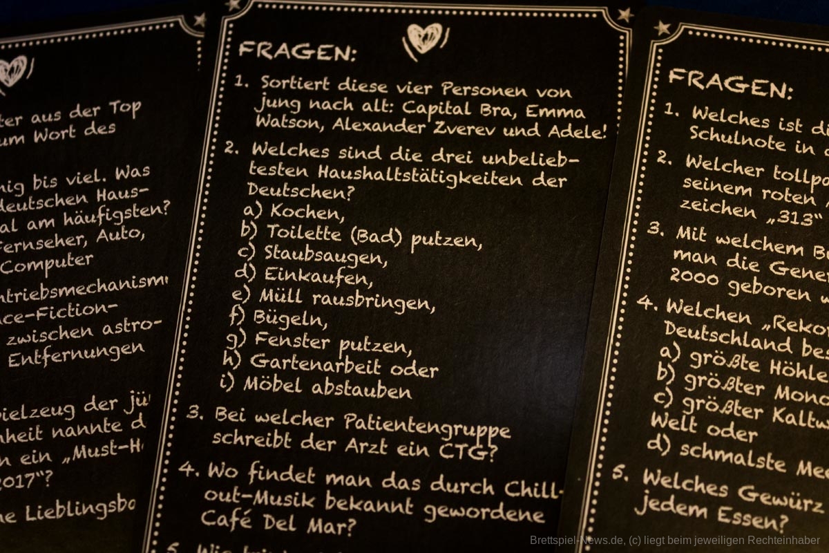 Das Spiel "Kneipenquiz" jetzt auch als Sonderedition mit Fragen über die Liebsten: Wer kennt die Lieblingspizza des besten Freundes und wer weiß, wohin Mama mit einer Zeitmaschine reisen würde? Das Spiel richtet sich an 3-6 Personen ab 12 Jahren, die Spielzeit wird mit 30 Minuten angegeben.