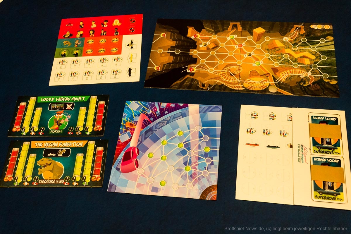 Hinweis: Die Bilder enthalten zwei Erweiterungen. Die Metallfahrzeuge und Racers sind optionale KS-Erweiterungen.